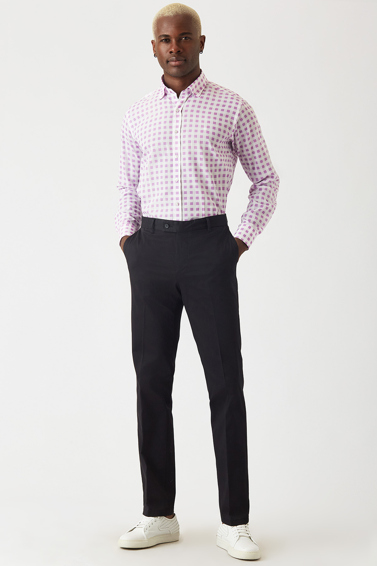 Erkek Uzun Kollu İtalyan Yaka Siyah Çizgili Pamuk Gömlek