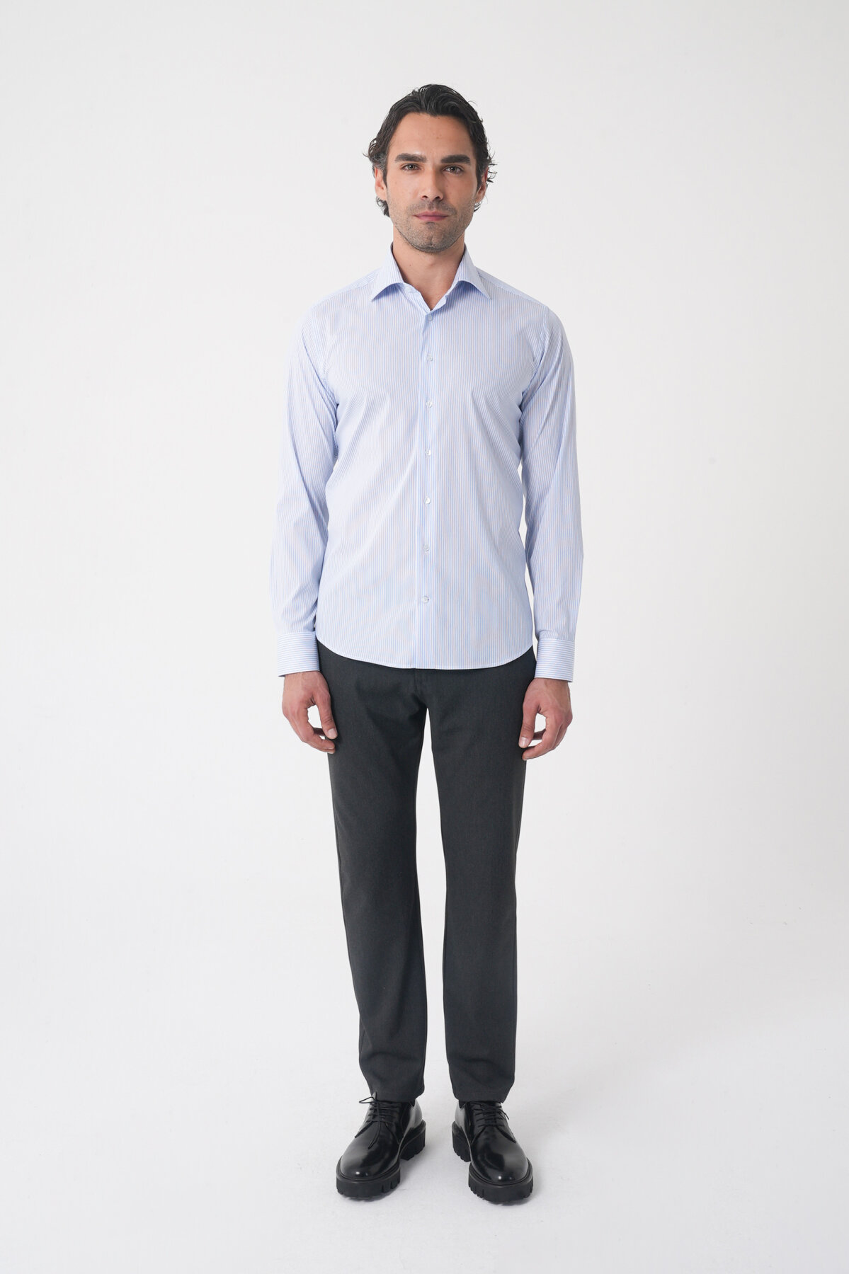 Açık Mavi Uzun Kol Klasik D Yaka Cepsiz Erkek Gömlek   Açık-Mavi