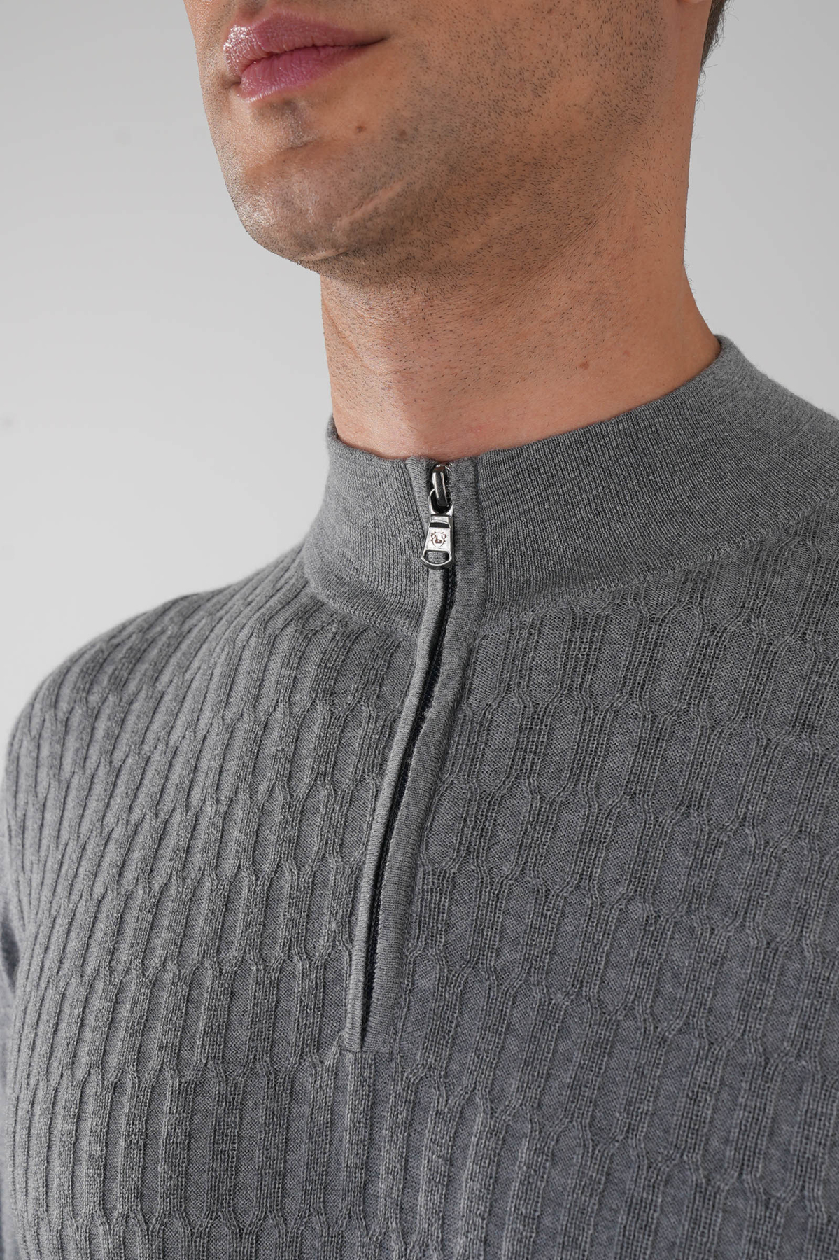 Antrasit Yarım Balıkçı Fermuarlı Full Jakar Yün Erkek Triko