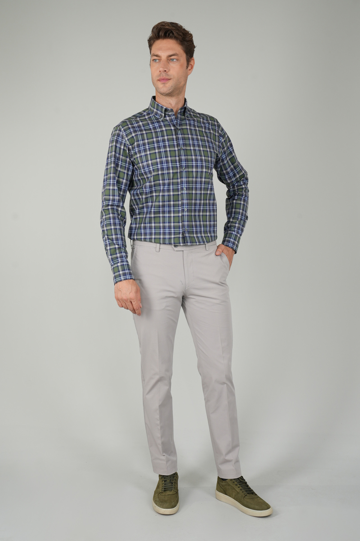 MODEL ÖLÇÜLERİ: Boy: 189 cm Göğüs: 102 cm Bel: 86 cm Kalça: 102 cmModel 48 Beden Giymektedir.