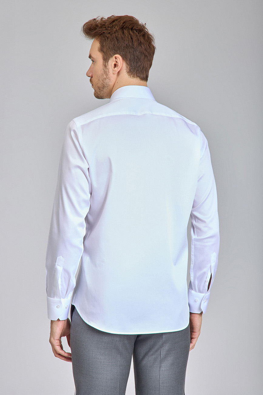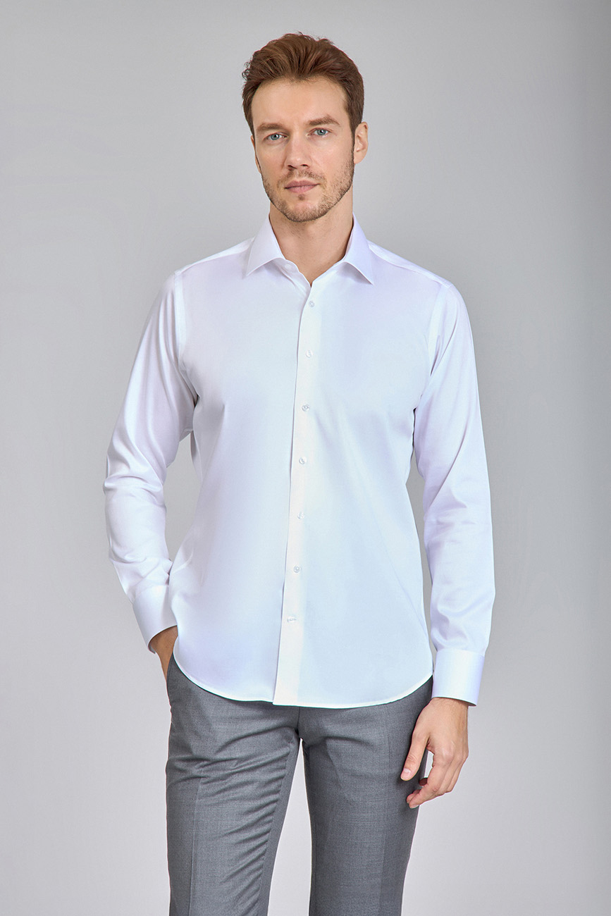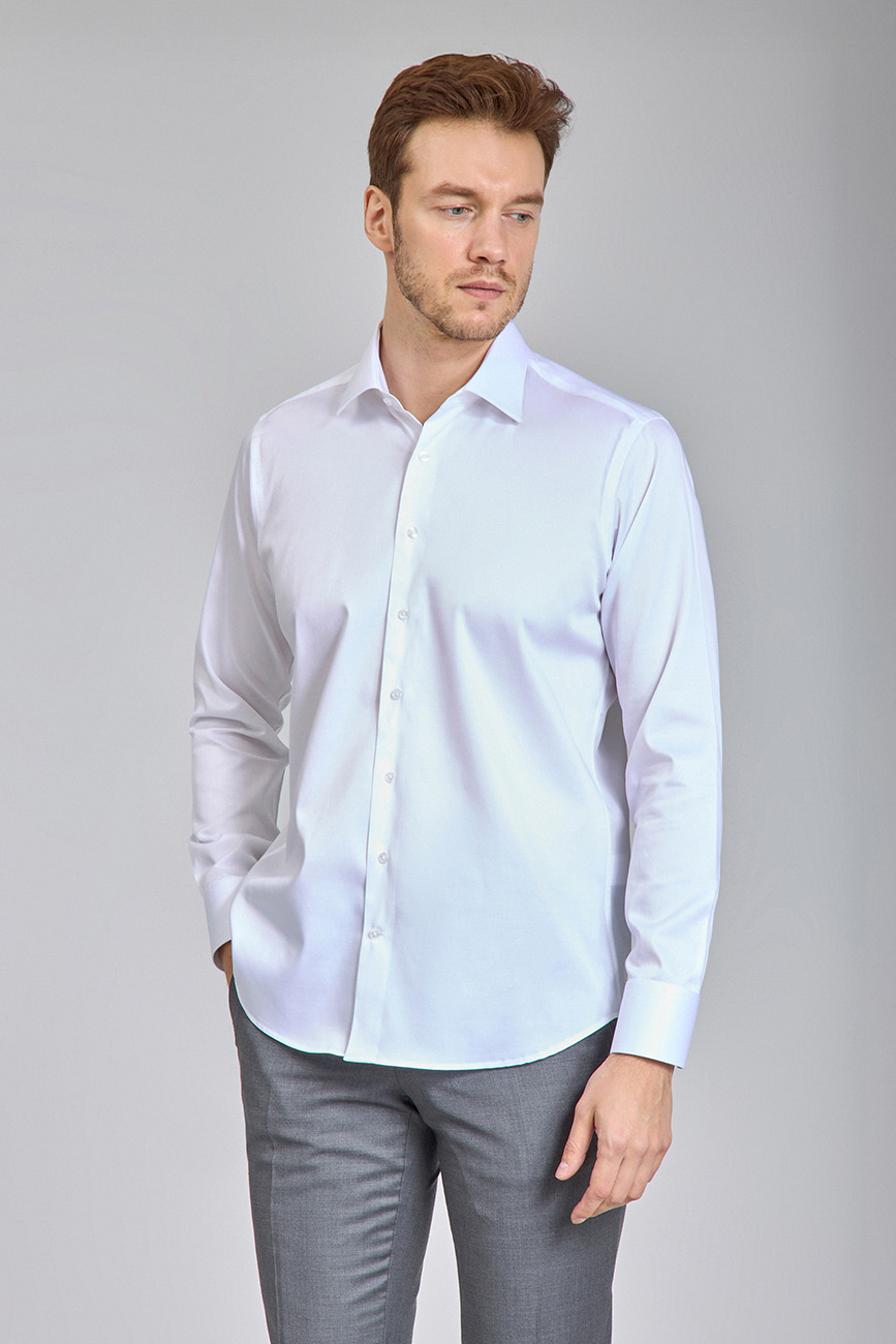 Beyaz Saten Uzun Kol Klasik Erkek Gömlek