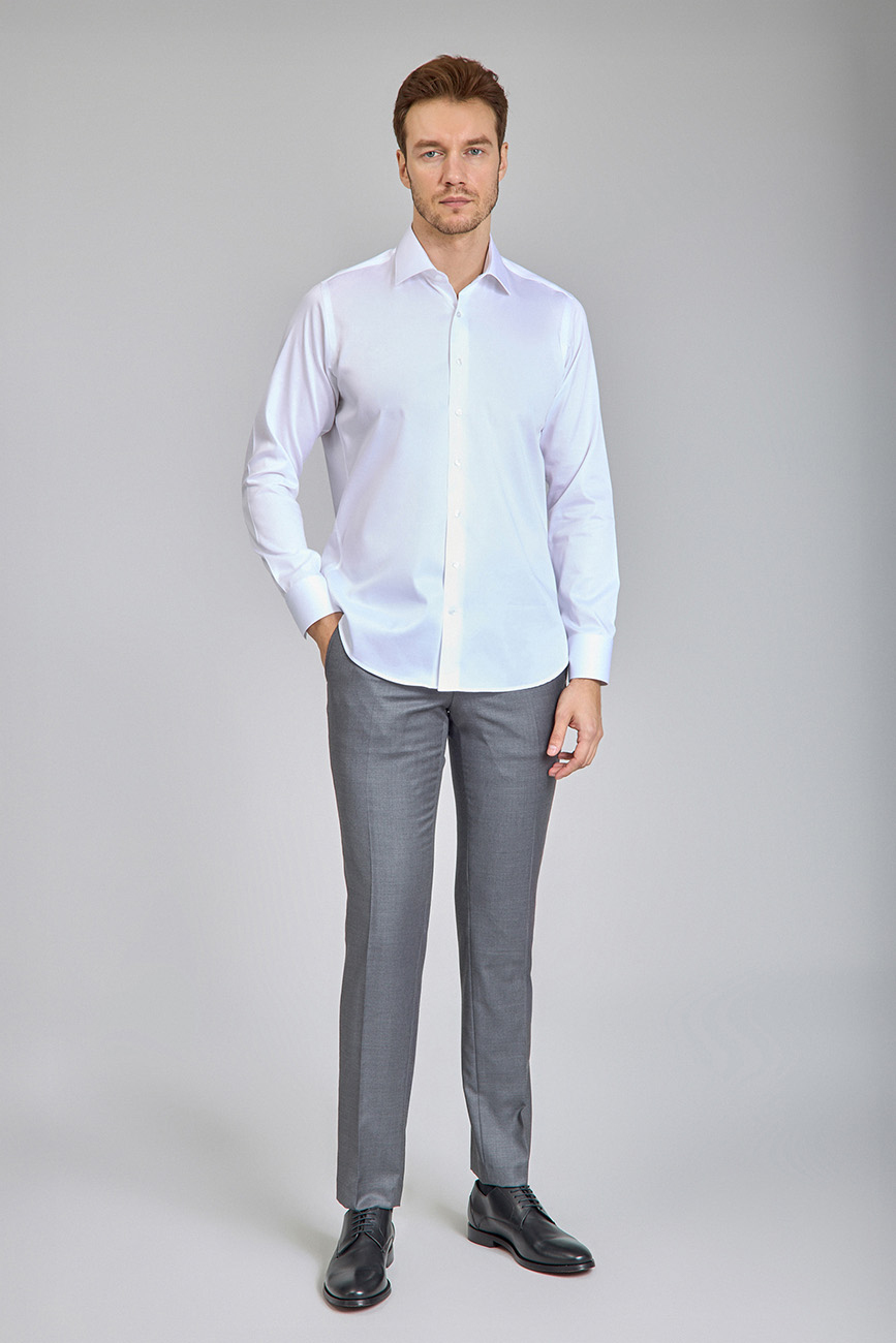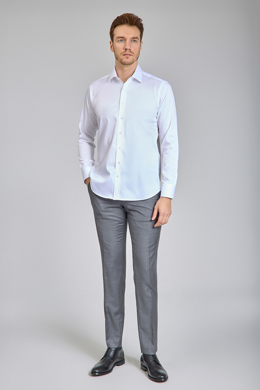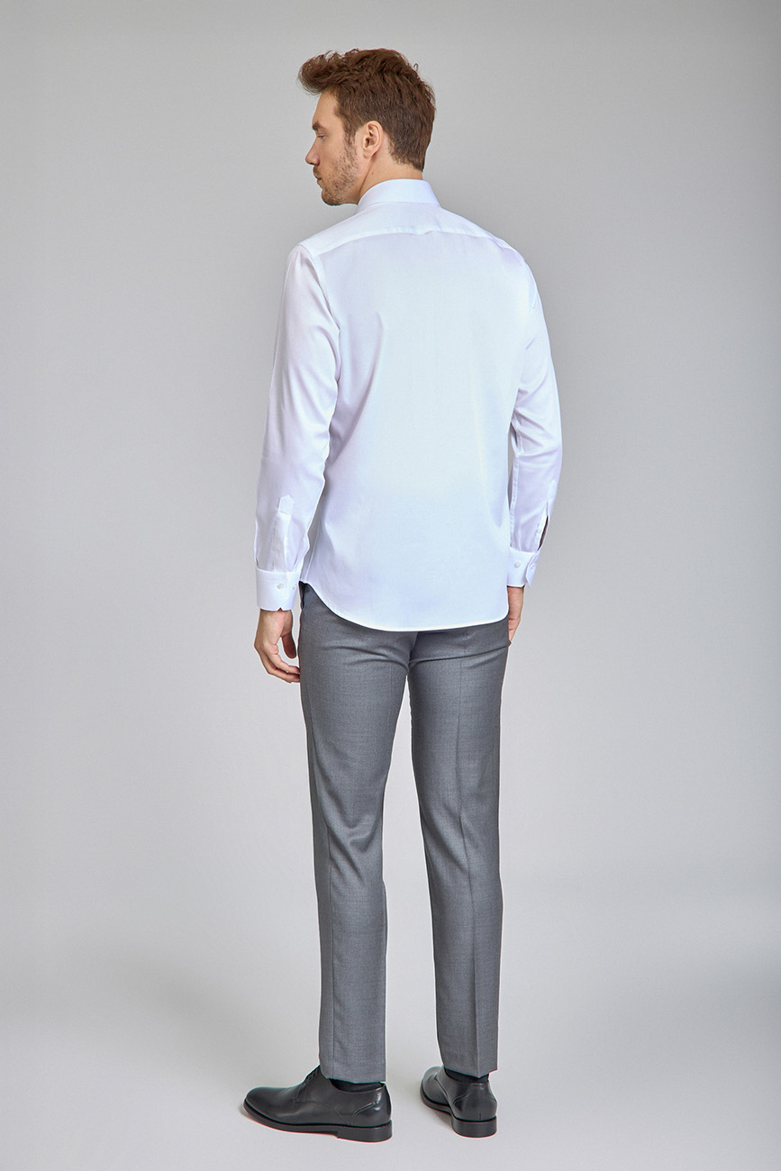 Beyaz Saten Uzun Kol Klasik Erkek Gömlek