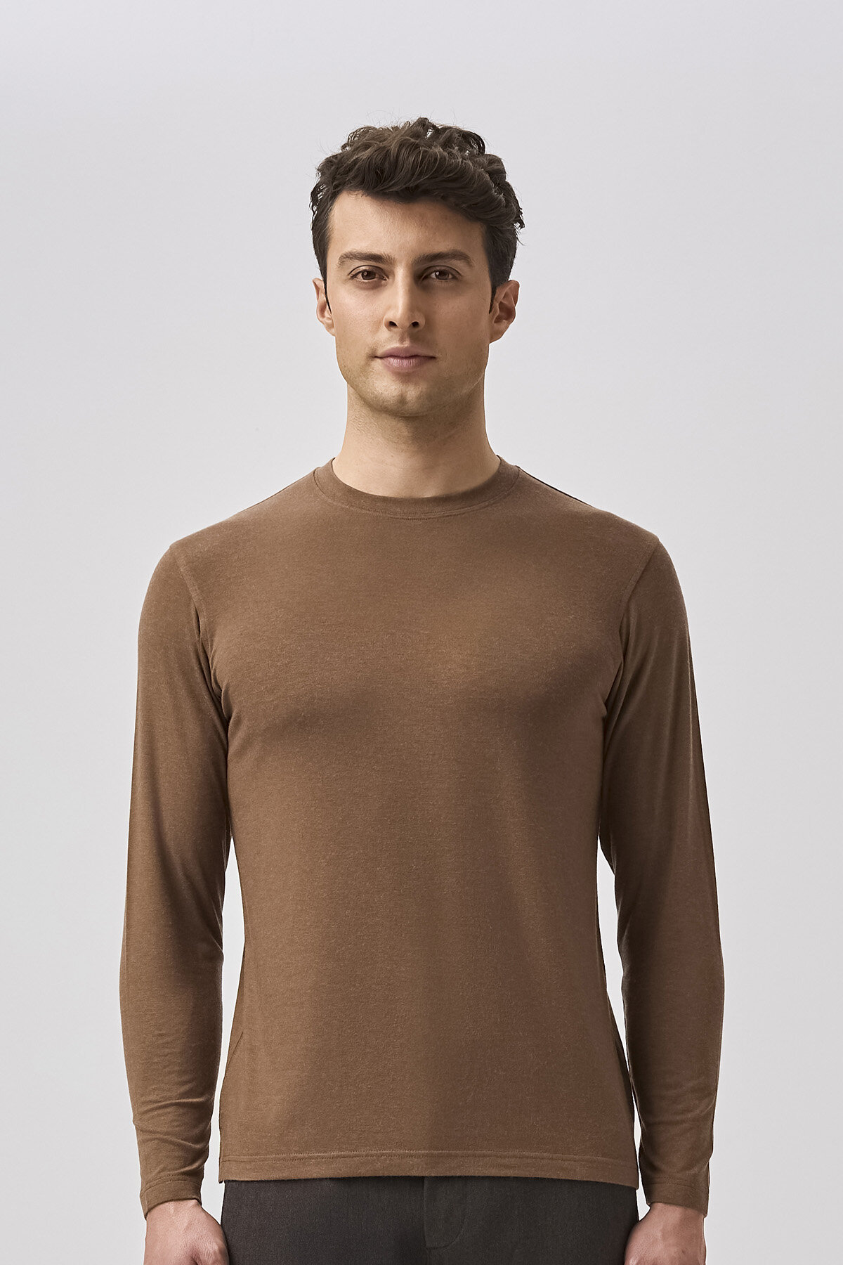 Bisse Studio Erkek Bisiklet Yaka Triko Taba