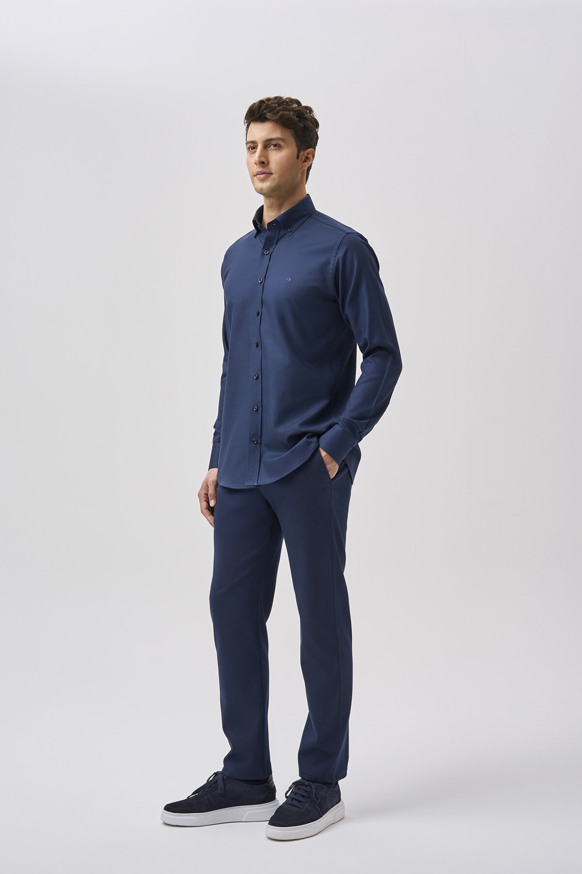 Bisse Studio Erkek Paşa Yaka Uzun Kollu Lacivert Gömlek