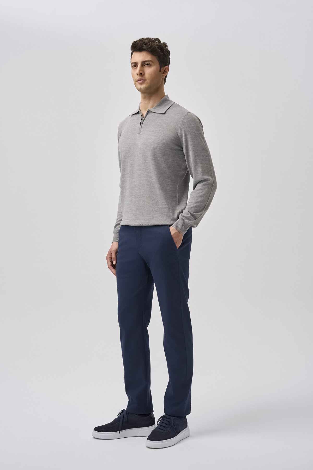 Bisse Studio Erkek Polo Yaka Fermuarlı Triko Gri
