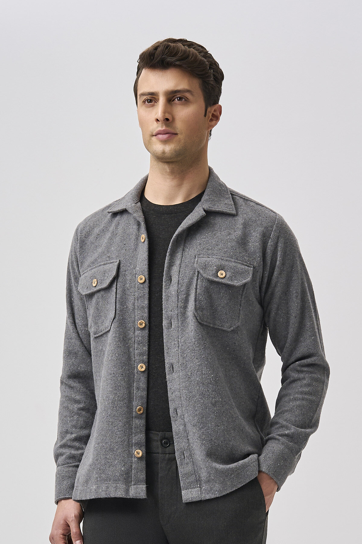 Bisse Studio Erkek Uzun Kollu Çift Cepli Oduncu Gömlek Antrasıt