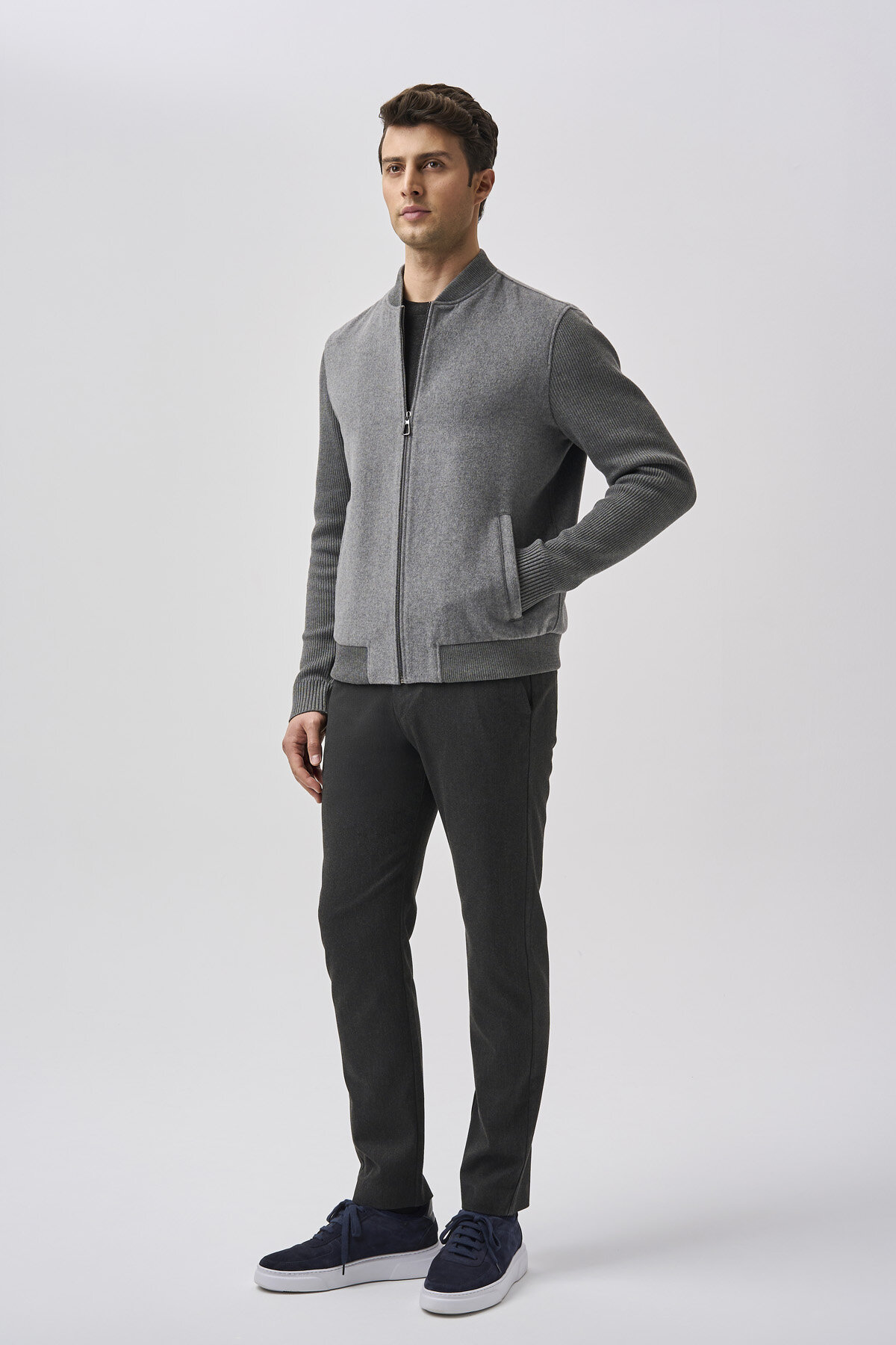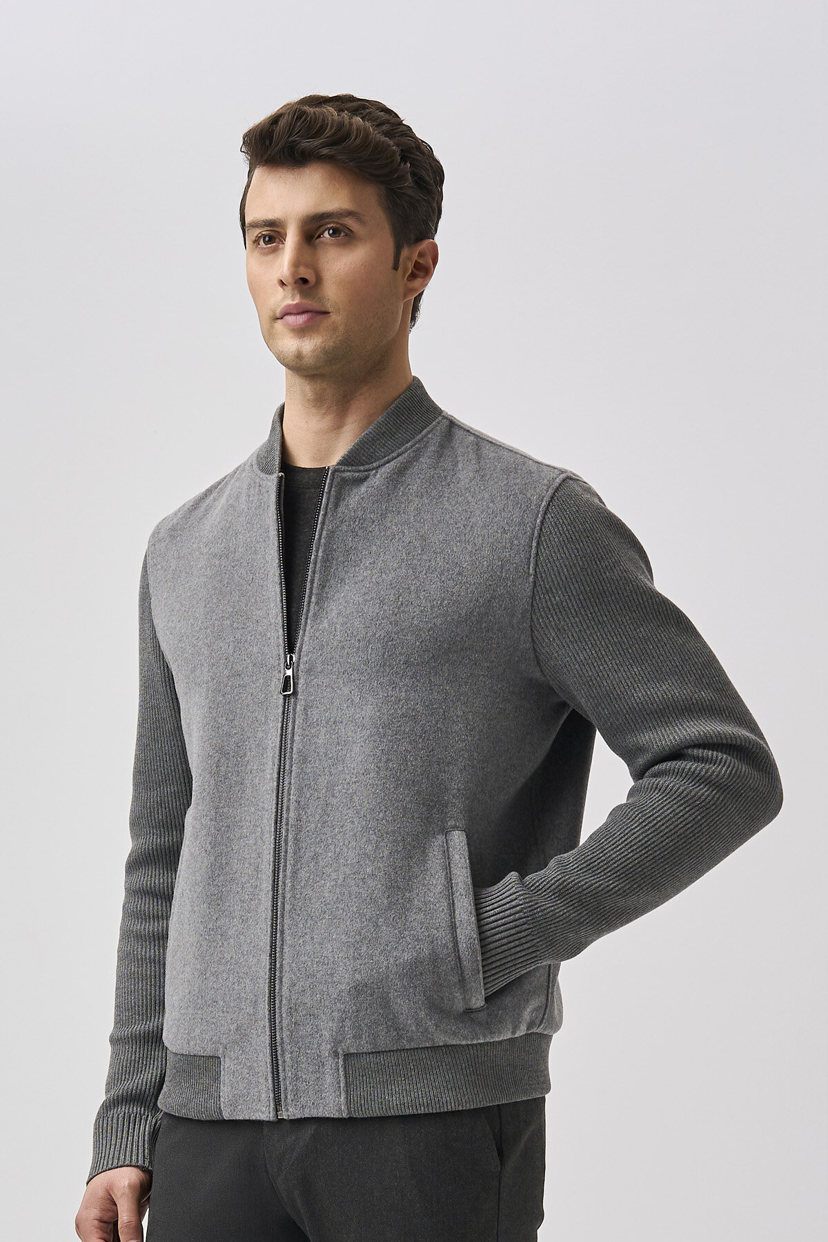Bisse Studio Örgü Detaylı Çıtçıtlı Ribanalı Gri Mont