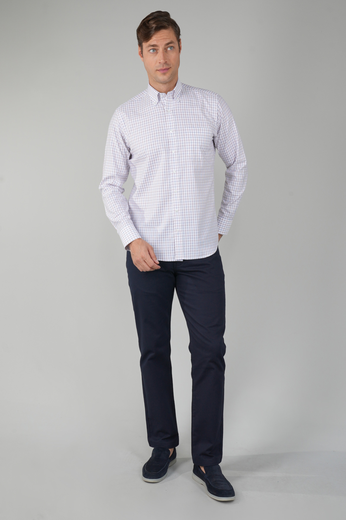 Bordo Kareli Regular Fit Erkek Pamuk Gömlek