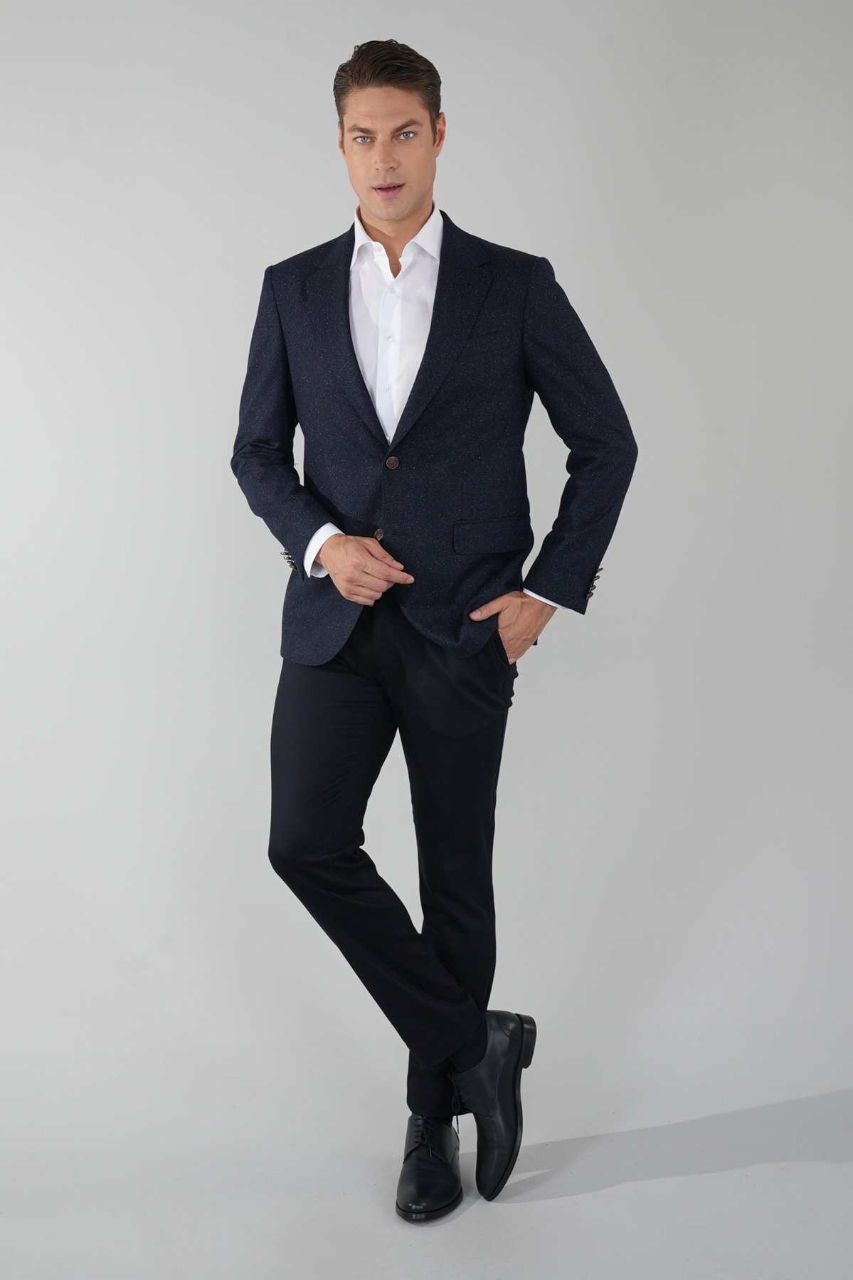 Comfort Fit Lacivert Mono Yaka Çift Yırtmaçlı 6 Drop Erkek İpek Yün Ceket