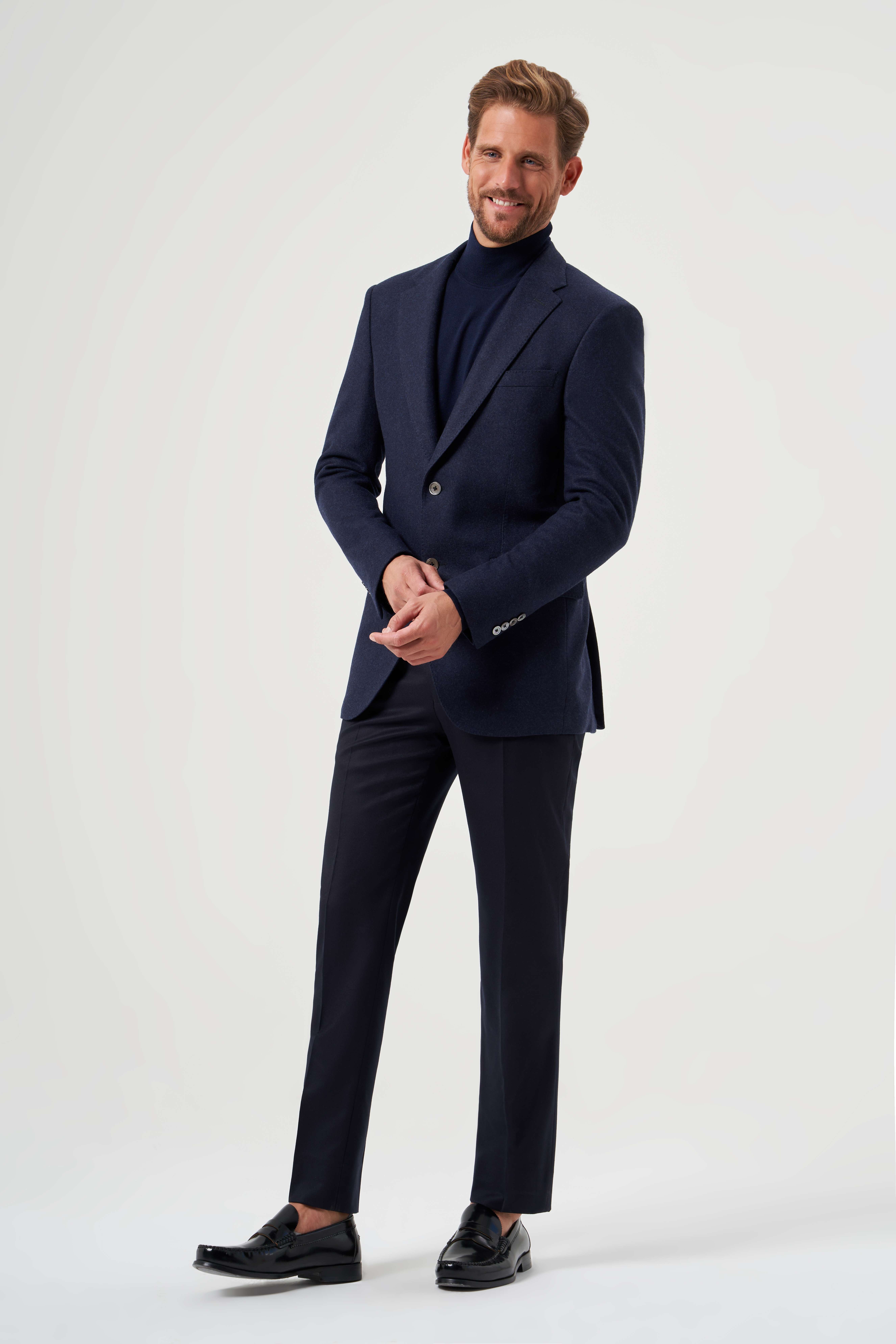 Comfort Fit Mono Yaka 6 Drop Lacivert Erkek Yün Ceket