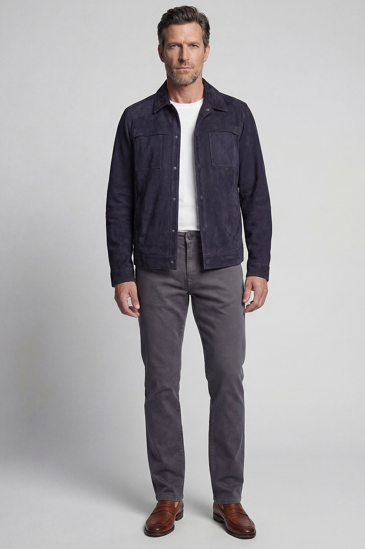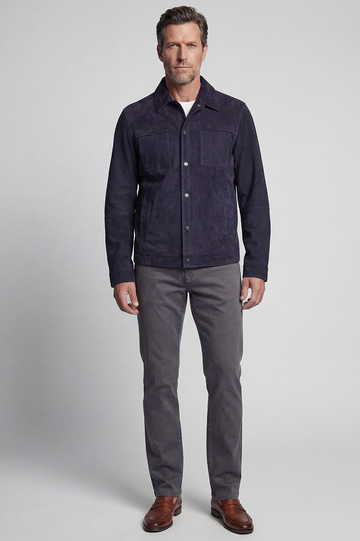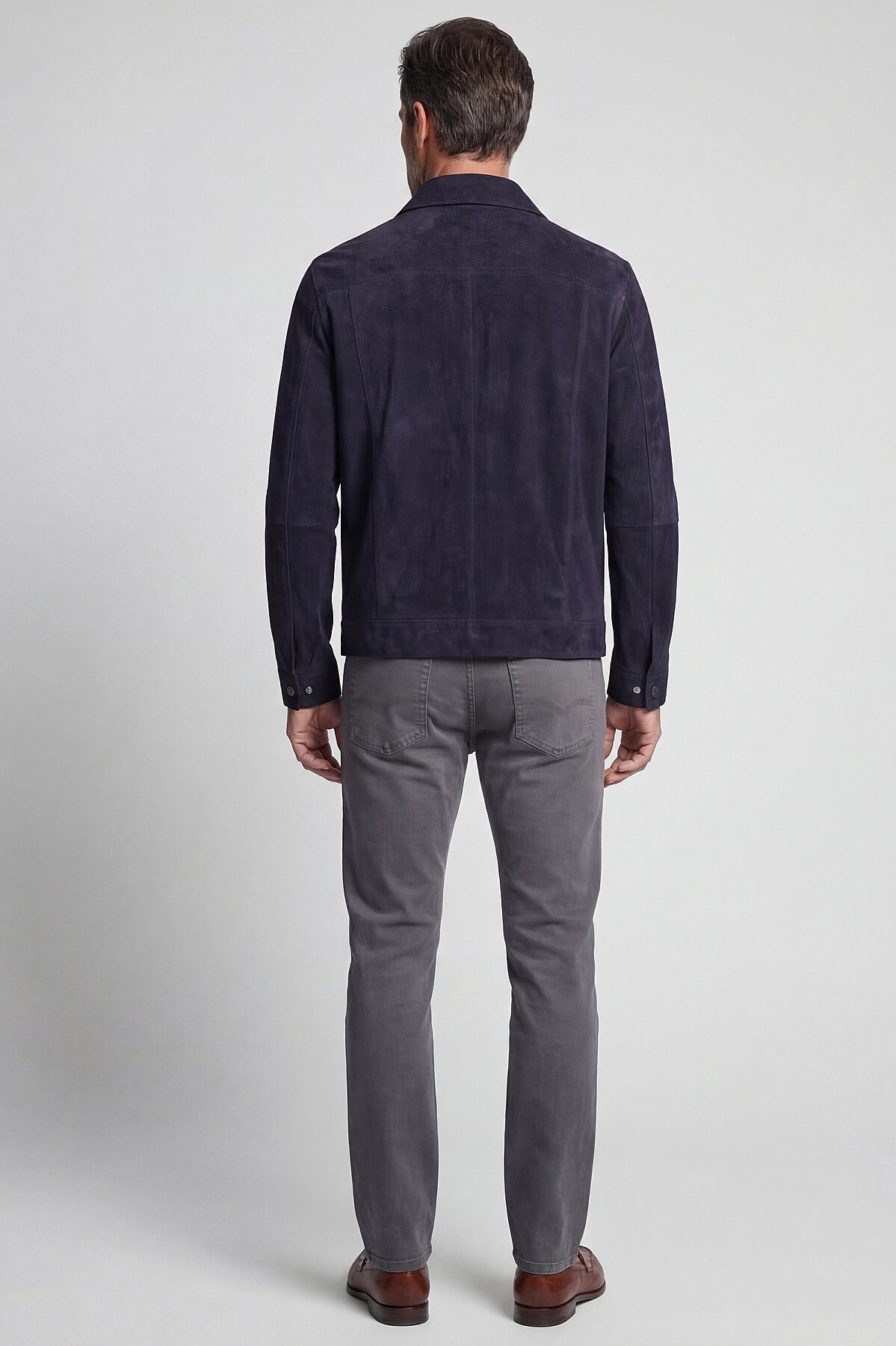 GÖMLEK YAKA SÜET DERİ MONT Lacivert
