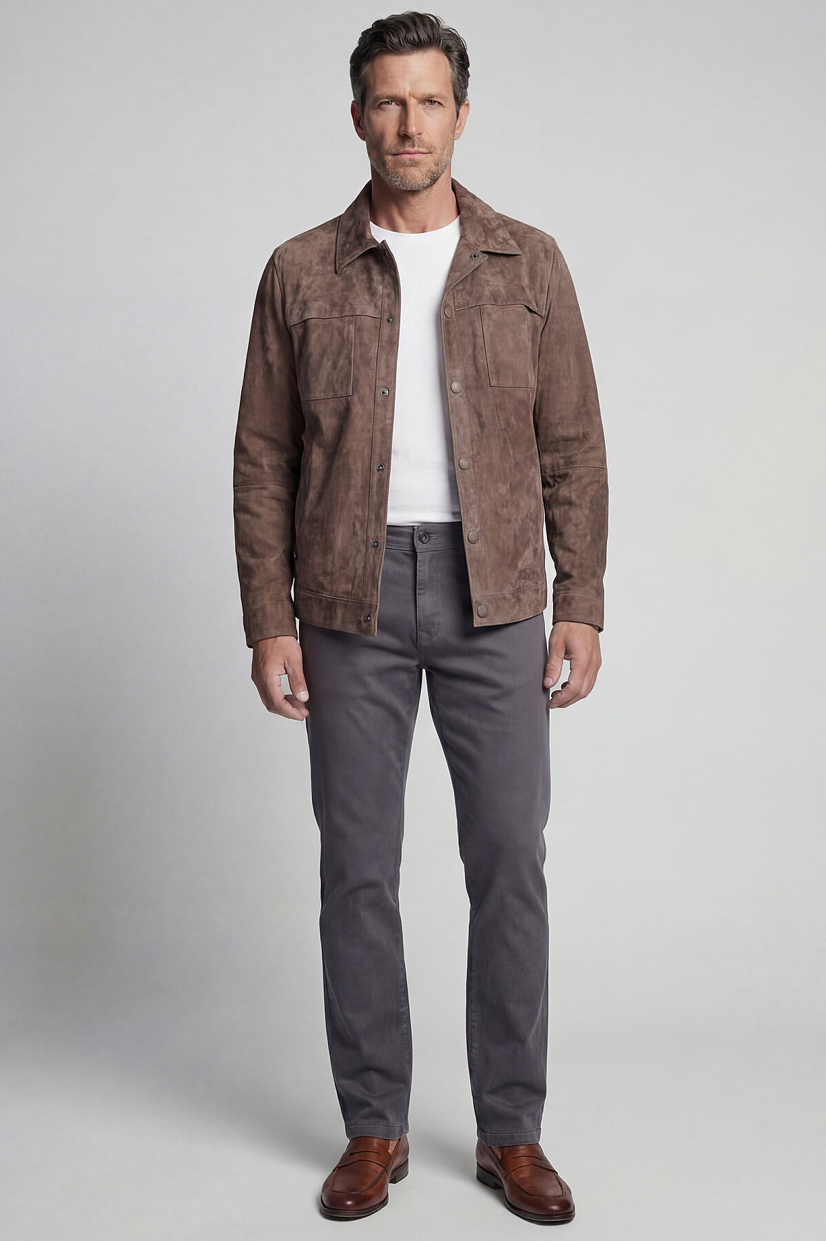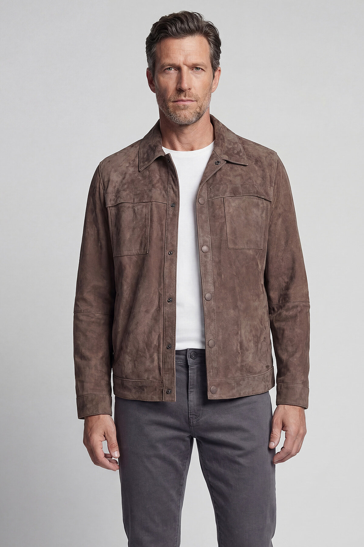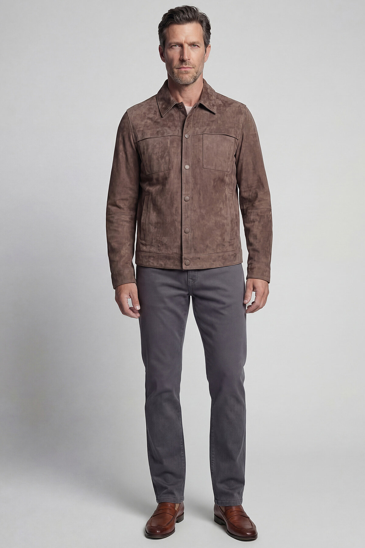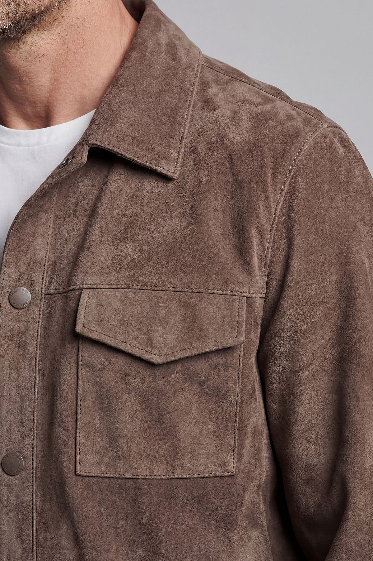 GÖMLEK YAKA SÜET DERİ MONT Vizon