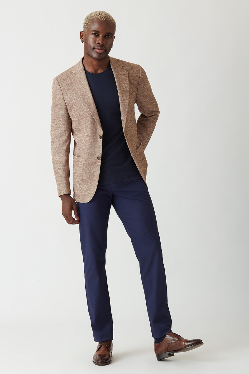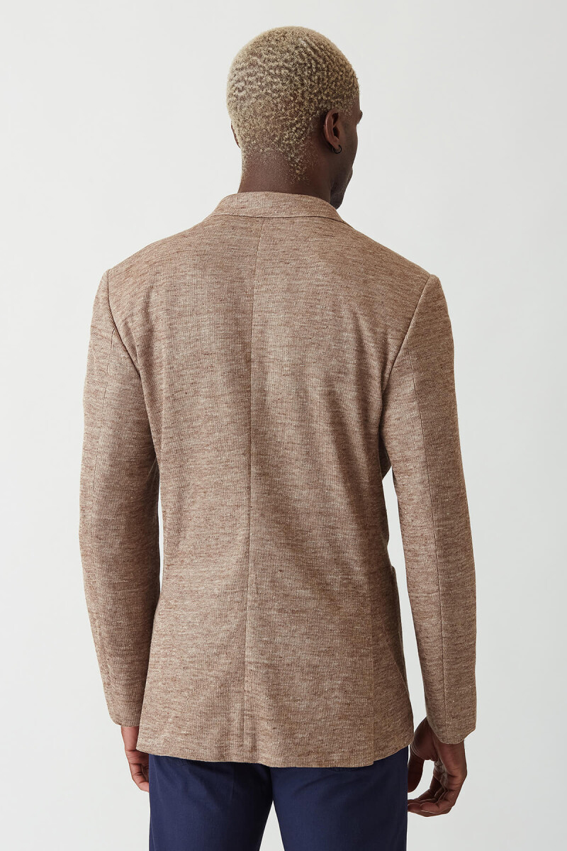 Erkek 2 Düğme Çift Yırtmaç Mono Yaka Ceket Bej