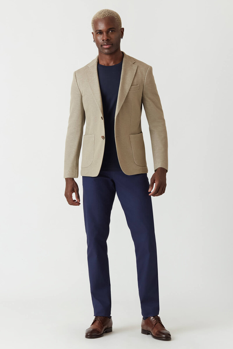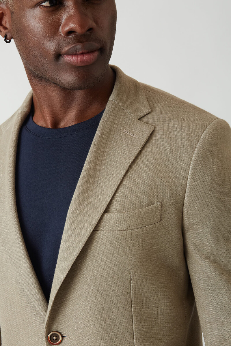 Erkek 2 Düğme Çift Yırtmaçlı Mono Yaka Ceket Bej