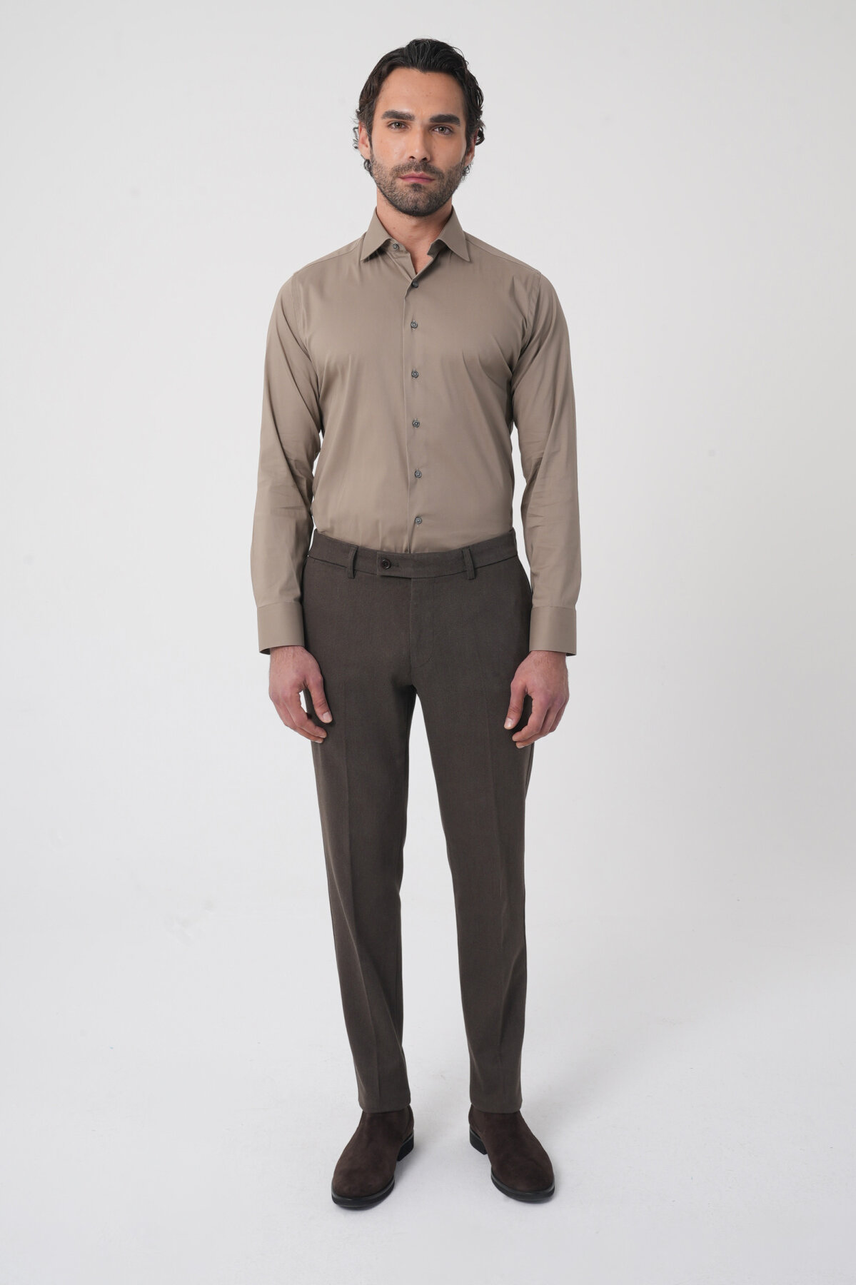 Erkek Bej Pamuk Regular Fit Klasik Gömlek