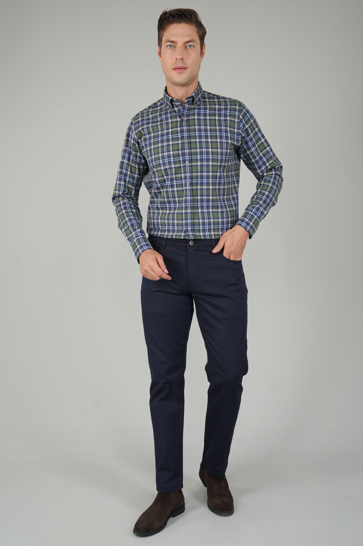 MODEL ÖLÇÜLERİ: Boy: 189 cm Göğüs: 99 cm Bel: 87 cm Kalça: 100 cmModel 44 Beden Giymektedir.