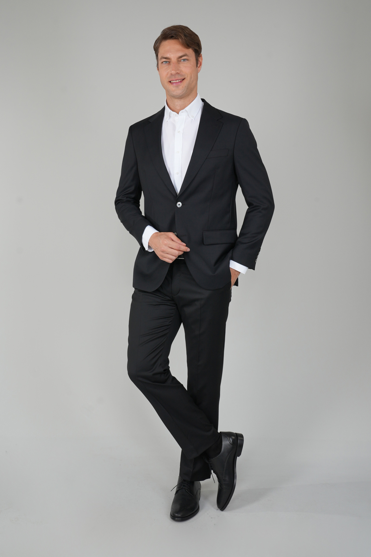 Erkek 6 Drop Mono Yaka Çift Yırtmaçlı Takım Elbise Sıyah