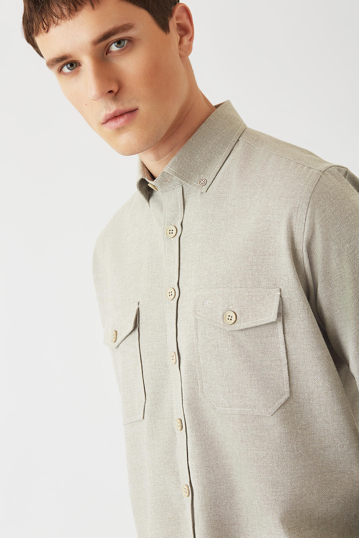 MODEL ÖLÇÜLERİ: Boy: 189 cm Göğüs: 90 cm Bel: 73 cm Kalça: 95 cm Model M Beden Giymektedir.