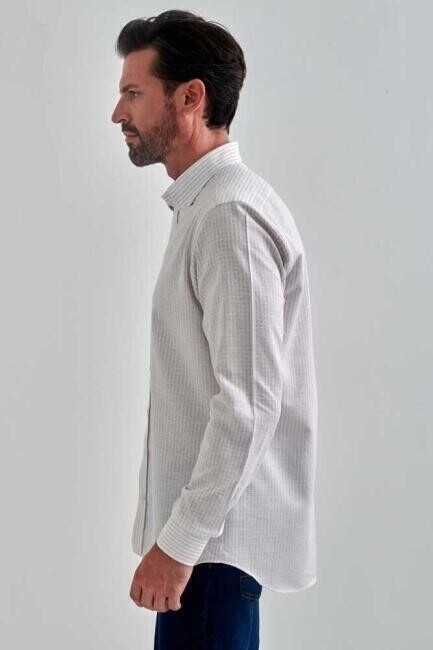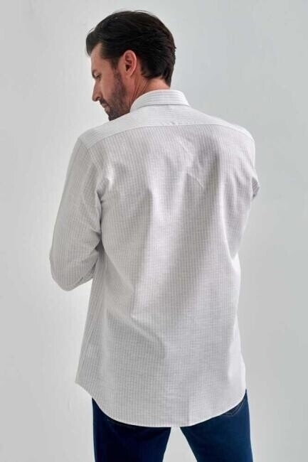 Erkek Gri Keten Pamuk Spor Uzun Kollu Gömlek