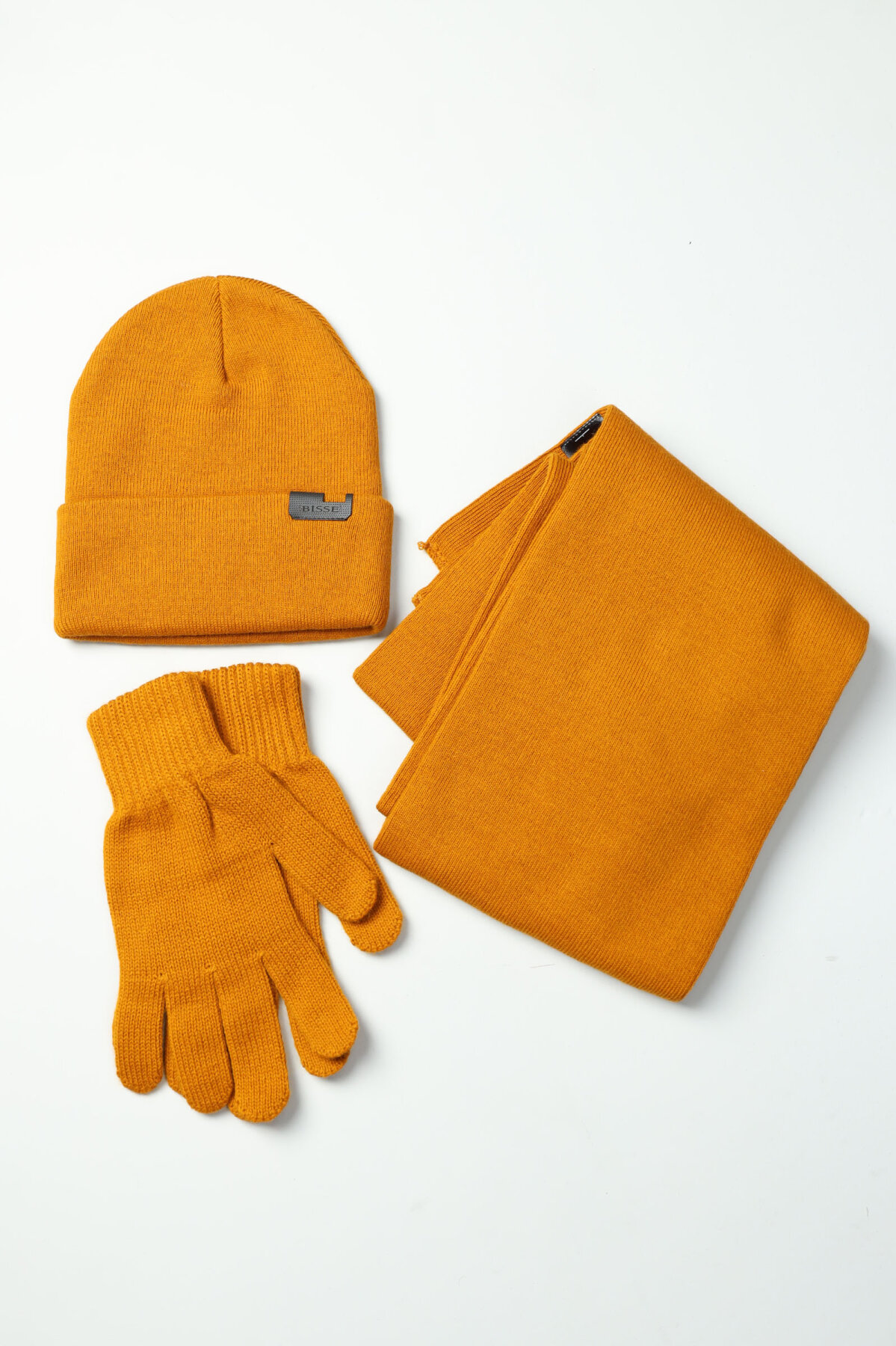 Erkek Hardal Akrilik Kaşkol Bere Seti