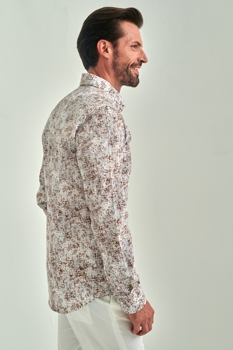 Erkek Kahve Slim Fit Klasik Yaka Spor Pamuk Gömlek