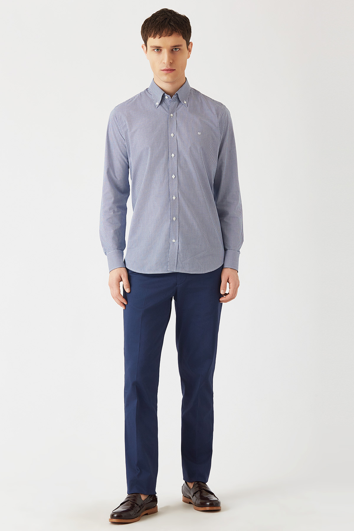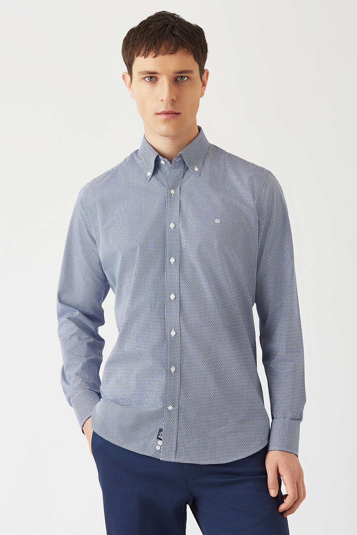 Erkek Lacivert Pamuk Regular Fit Düğmeli Yaka Erkek Gömlek