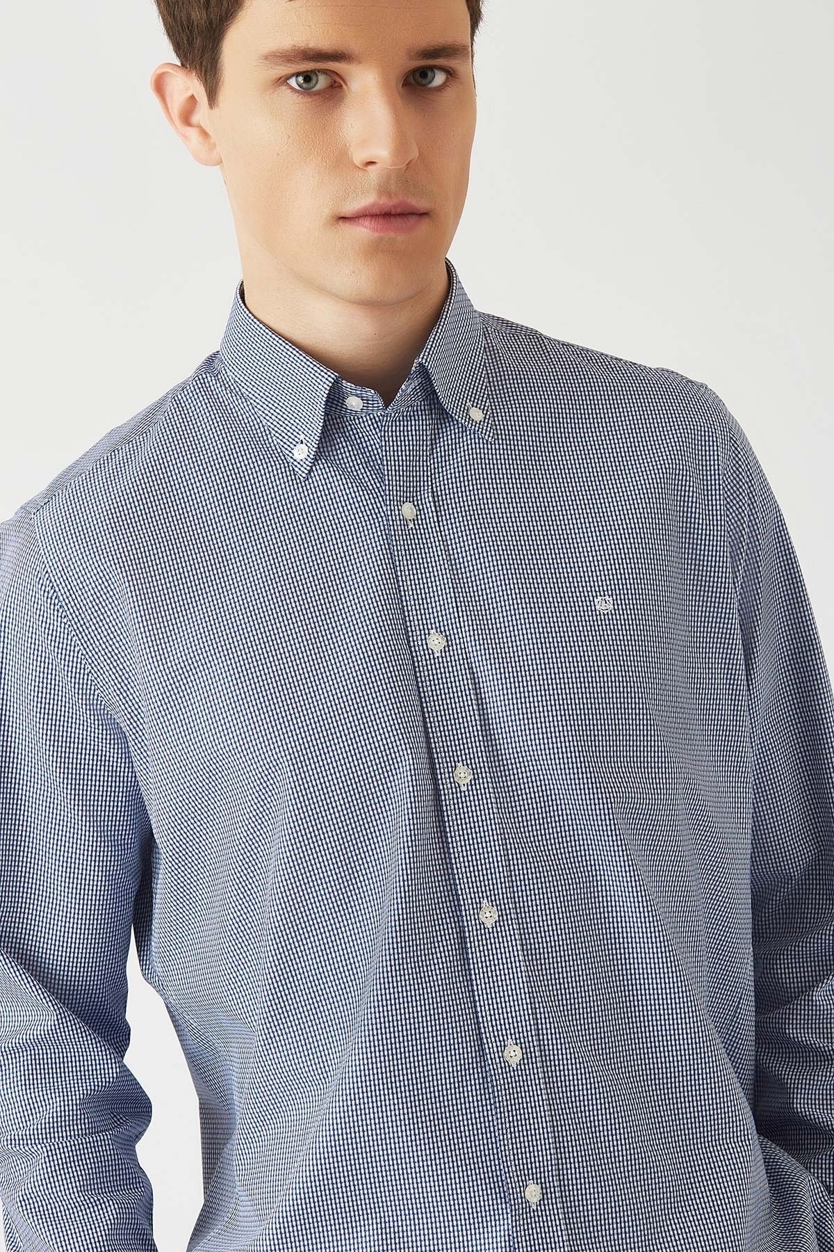 Erkek Lacivert Pamuk Regular Fit Düğmeli Yaka Erkek Gömlek Lacivert