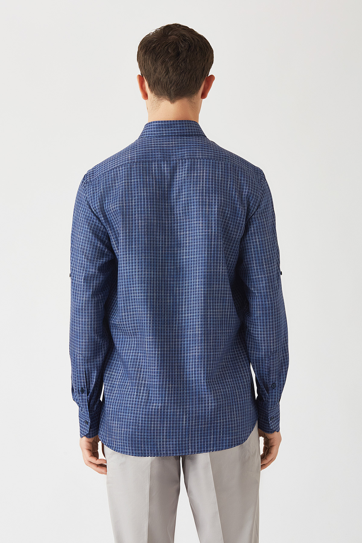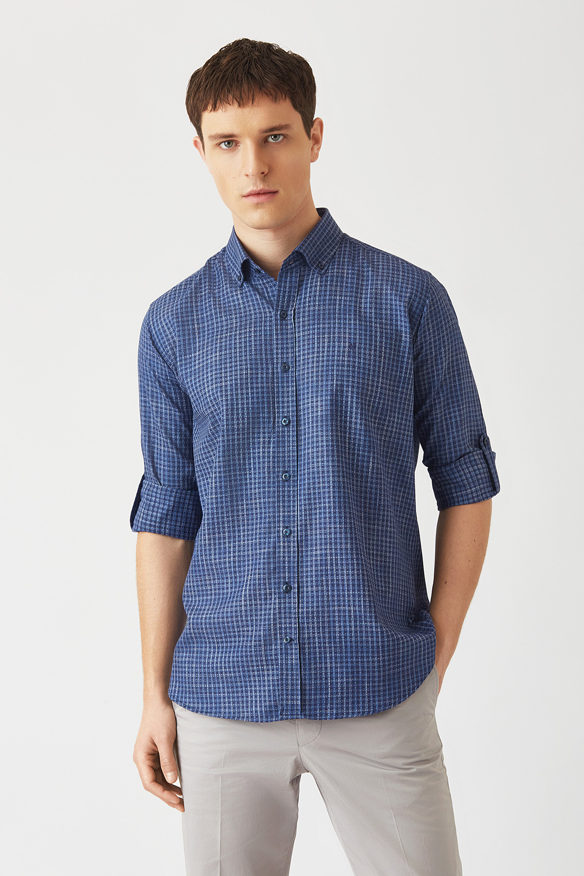 Erkek Lacivert Pamuk Regular Fit Spor Gömlek