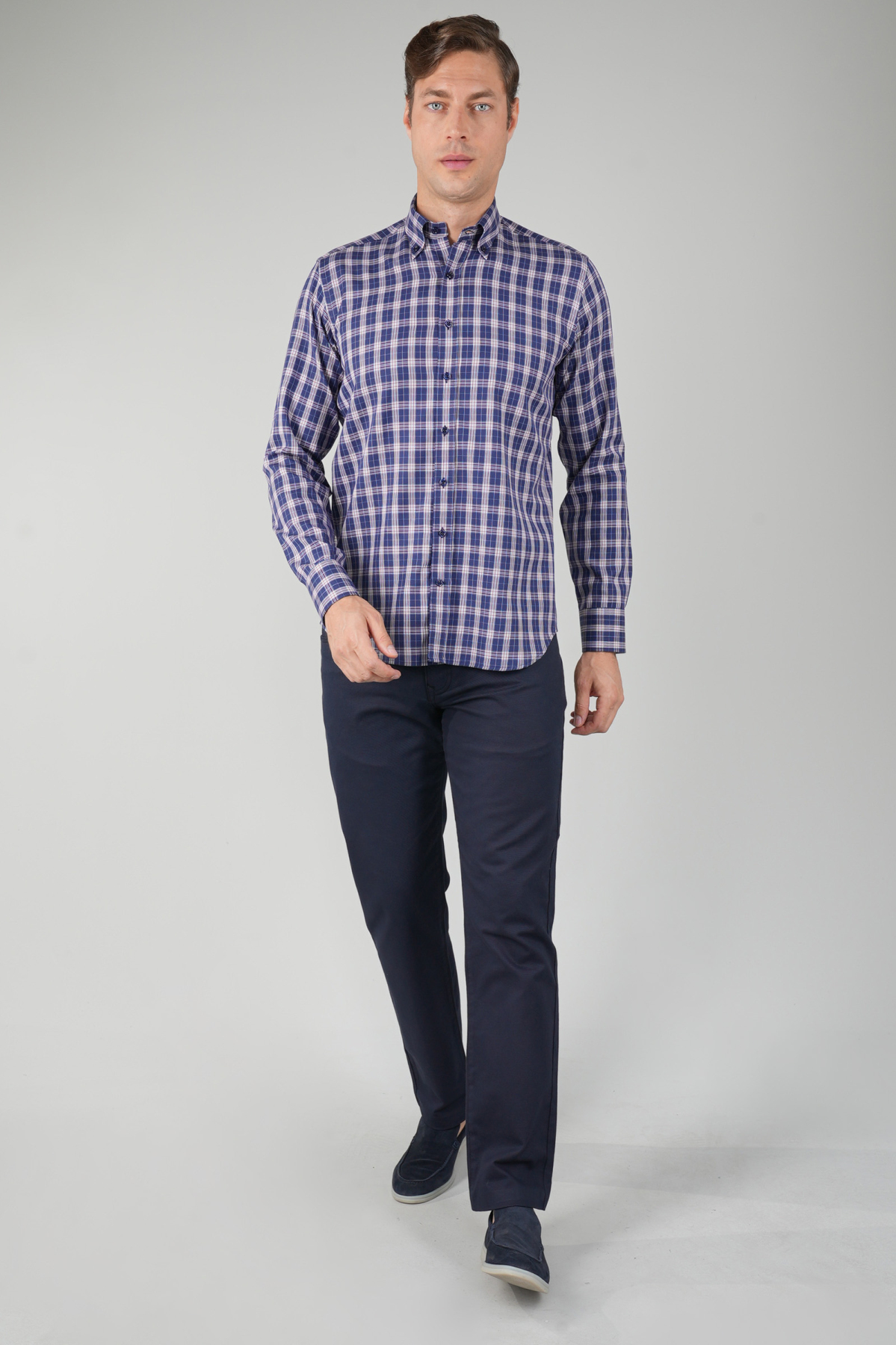 Erkek Lacivert Uzun Kollu Kareli Spor Gömlek