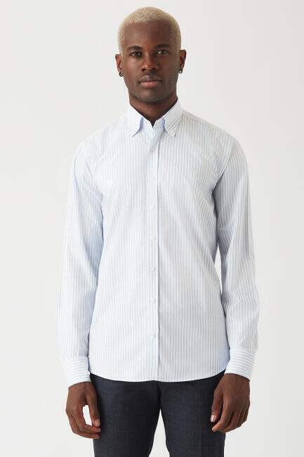 Erkek Mavi Desenli Regular Fit Uzun Kol Gömlek