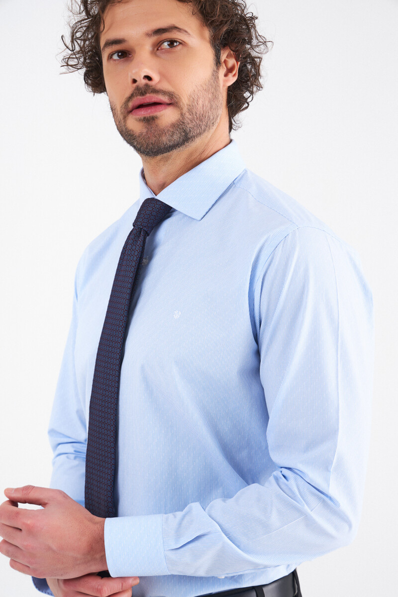 Erkek Mavi Pamuk Regular Fit İtalyan Yaka Klasik Gömlek