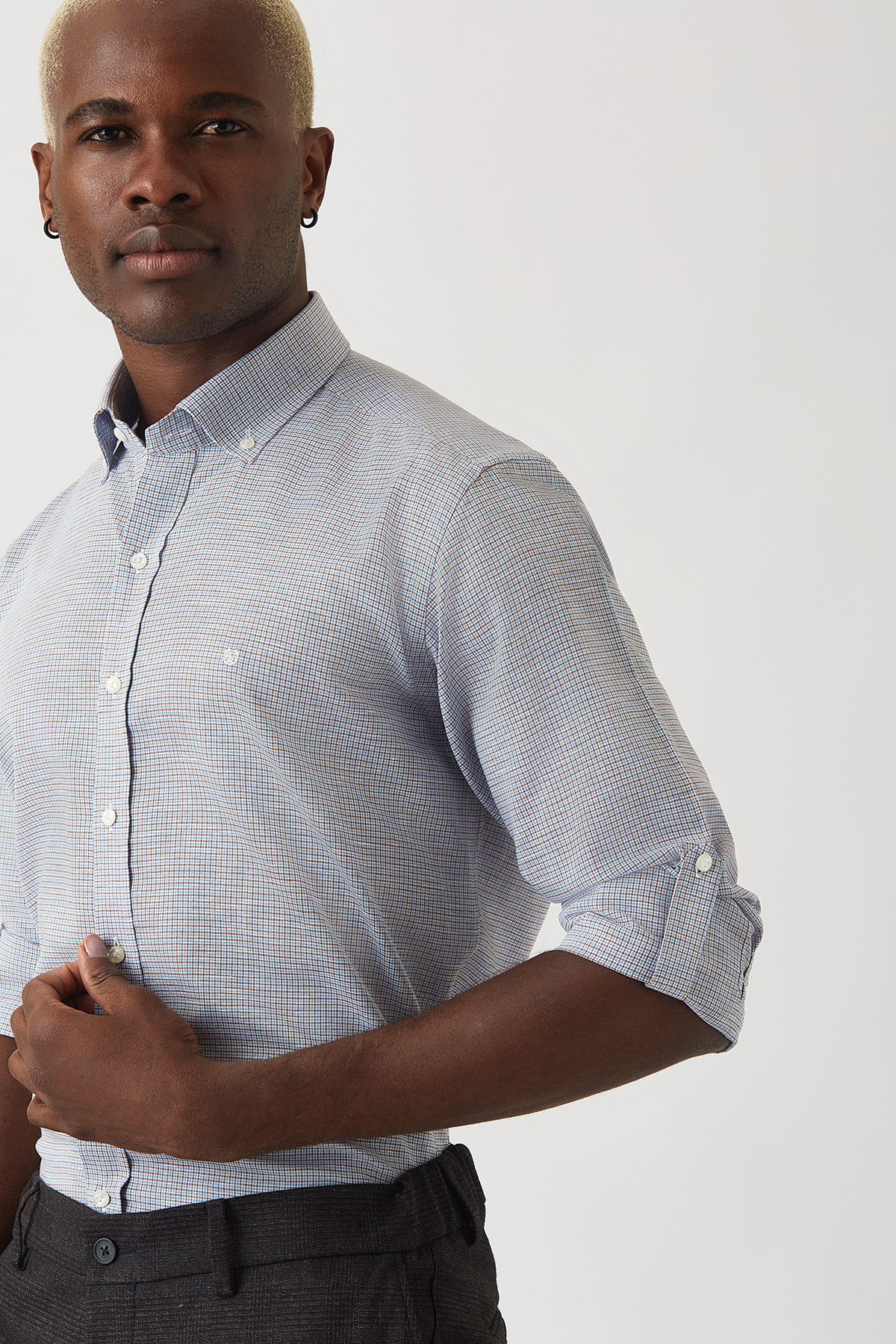 Erkek Mavi Pamuk Regular Fit Paşa Yaka Spor Gömlek