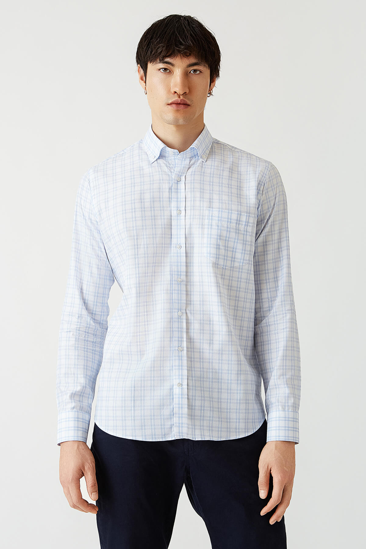 Erkek Mavi Paşa Yaka Regular Fit Spor Erkek Gömlek
