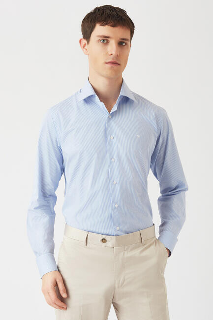 Erkek Mavi Regular Fit Likralı Ofis Tarzı Klasik Gömlek - 1Erkek Mavi Regular Fit Likralı Ofis Tarzı Klasik Gömlek - 2Erkek Mavi Regular Fit Likralı Ofis Tarzı Klasik Gömlek - 3Erkek Mavi Regular Fit Likralı Ofis Tarzı Klasik Gömlek - 4Erkek Mavi Regular Fit Likralı Ofis Tarzı Klasik Gömlek - 5