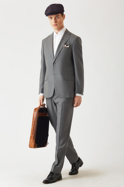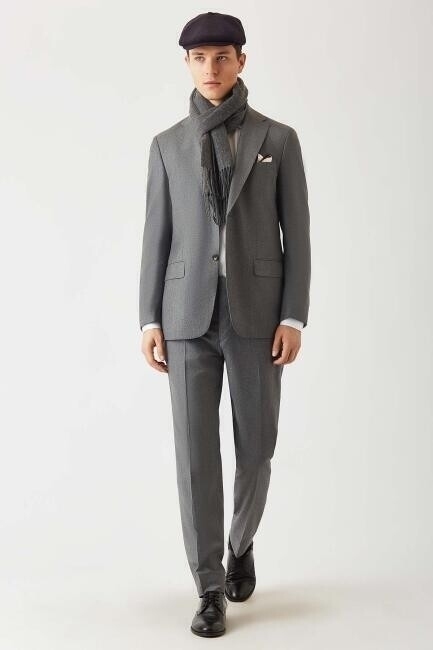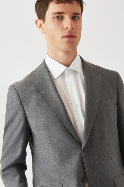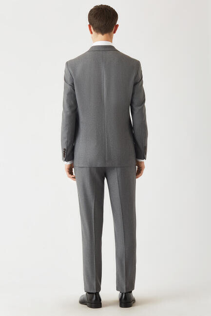 Erkek Mono Yaka 2 Düğmeli Çift Yırtmaçlı Yün Kaşmir Takım Elbise Gri