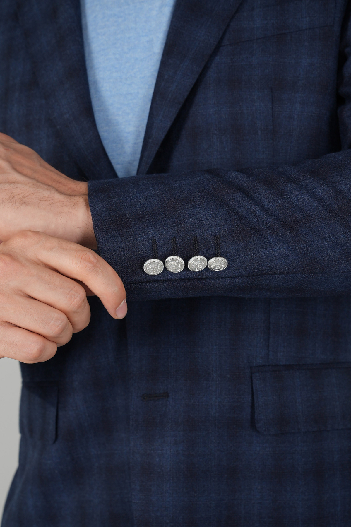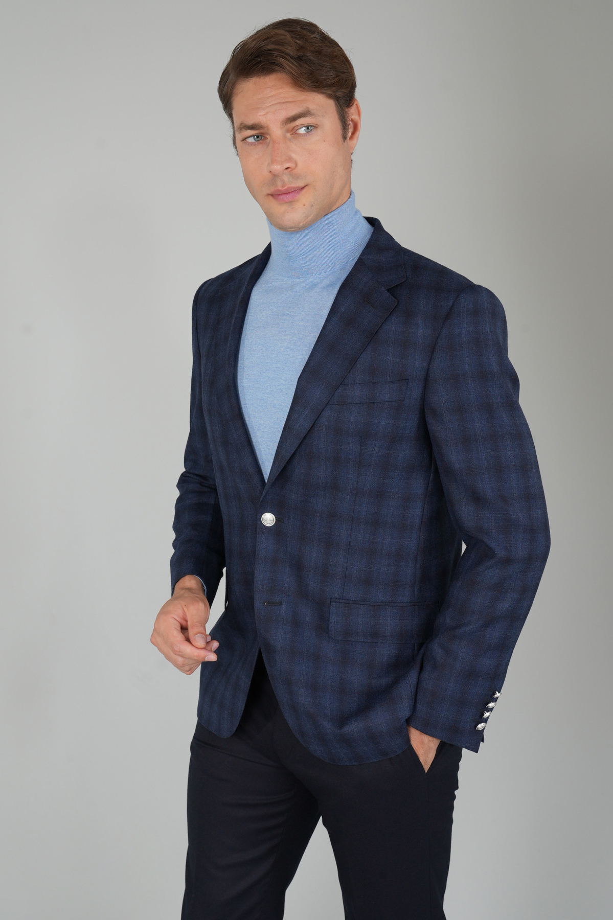 Erkek Mono Yaka 6 Drop Çift Yırtmaçlı Lacivert Yün Ceket