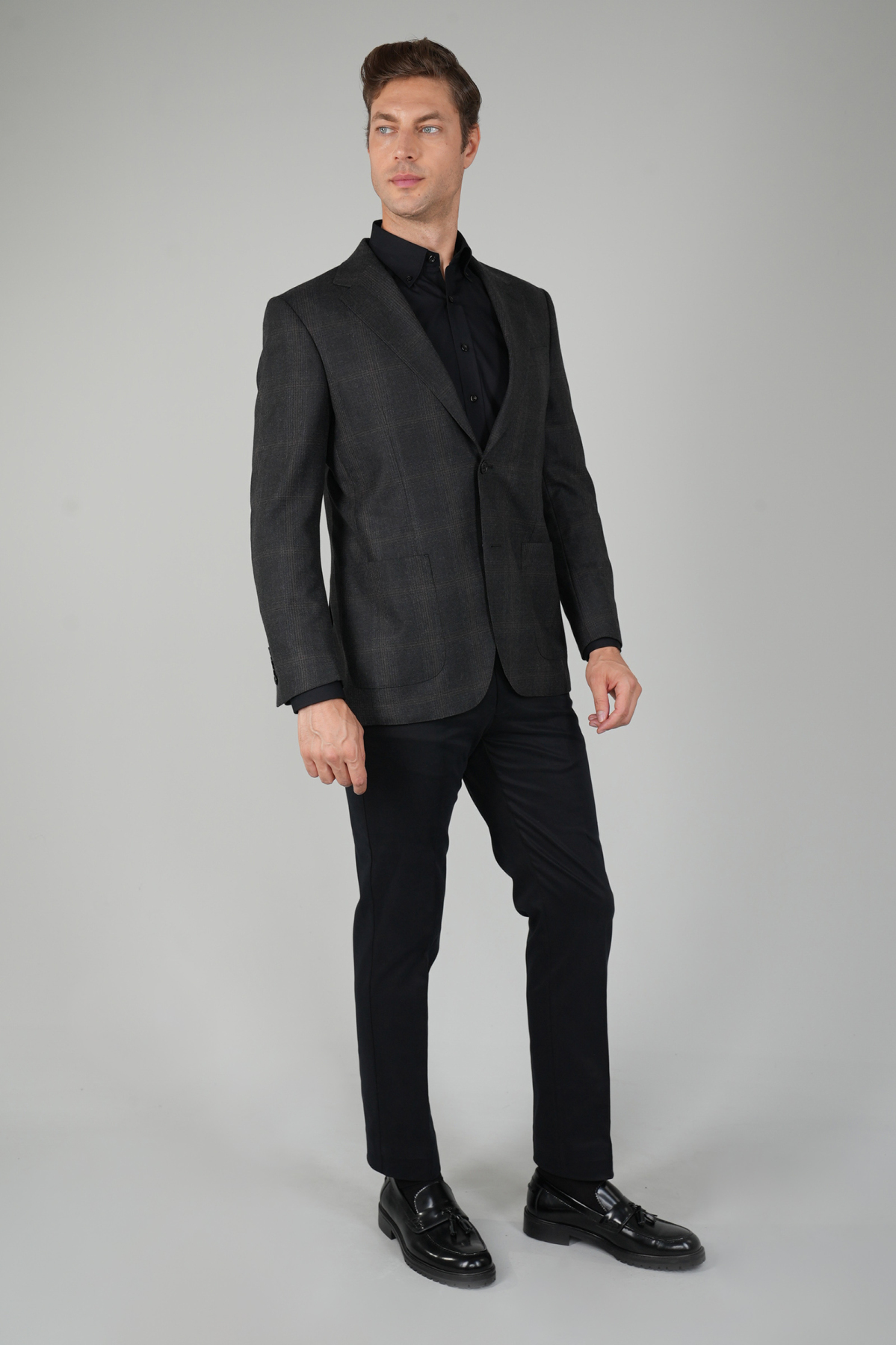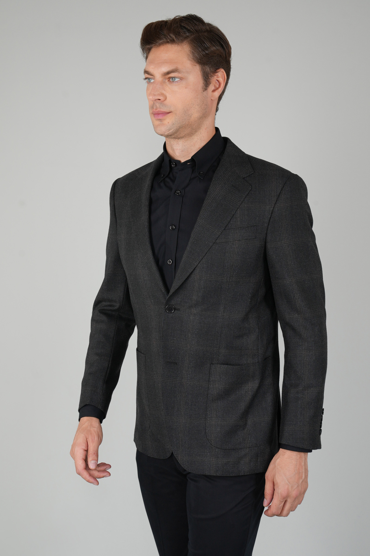 Erkek Mono Yaka Çift Yırtmaç 6 Drop Antrasit Ceket