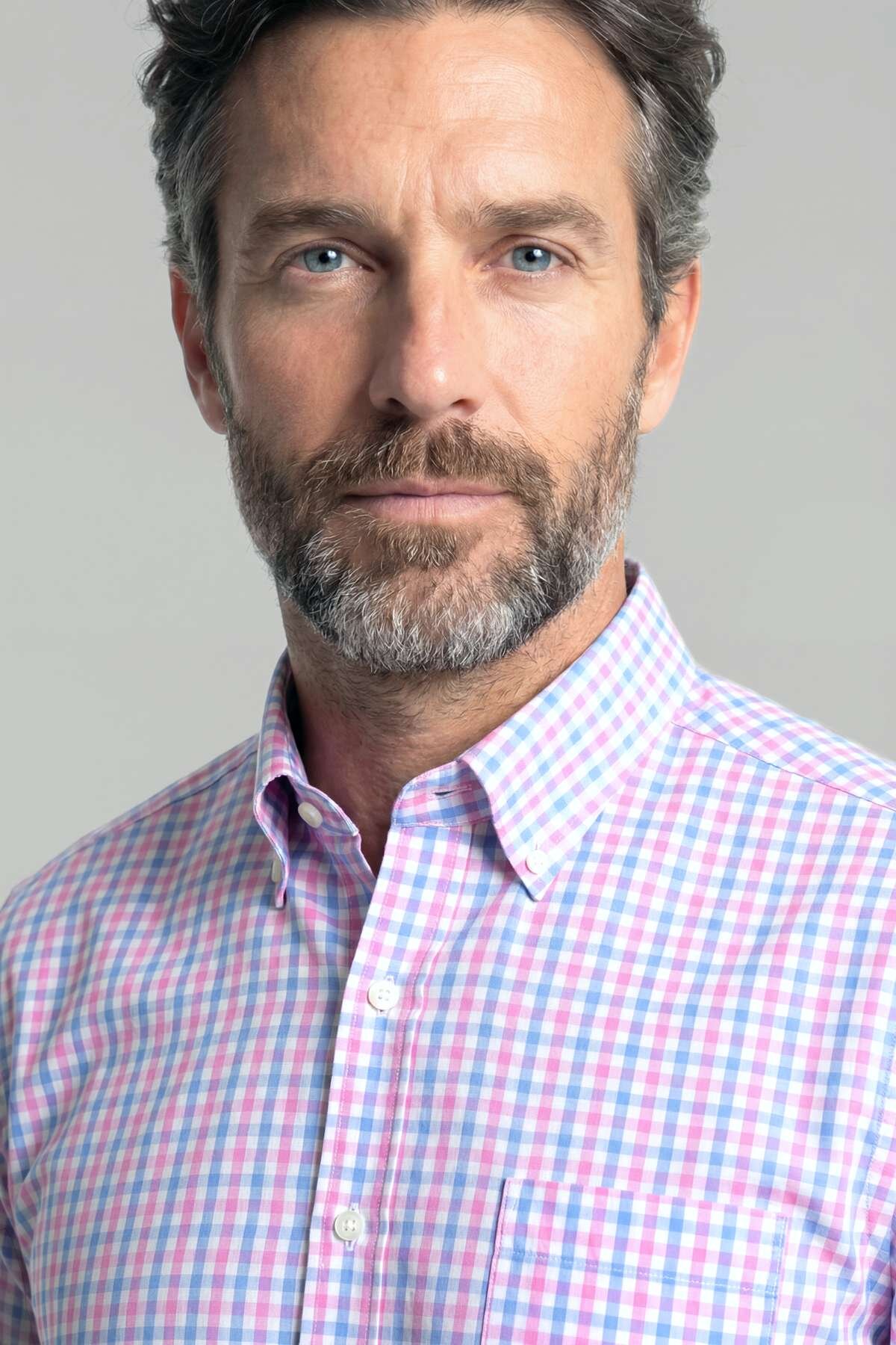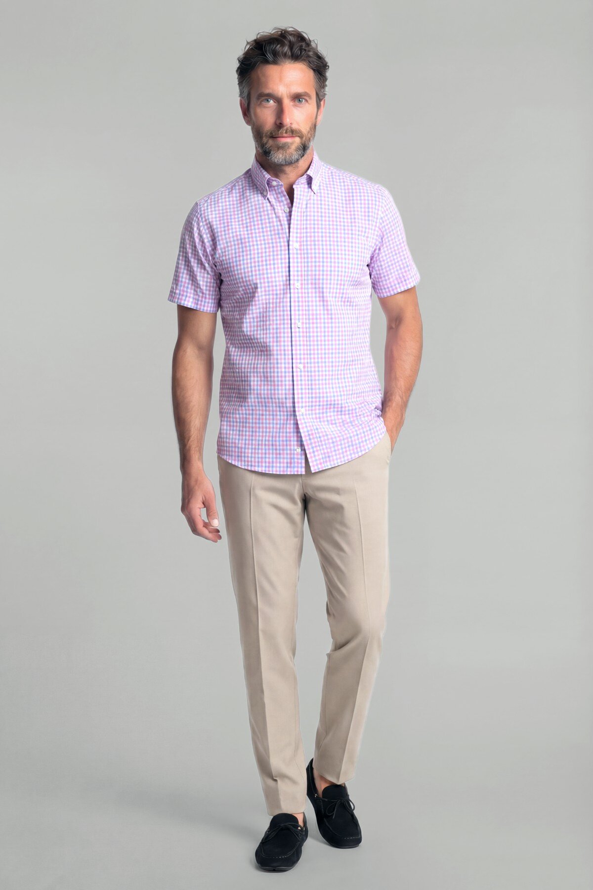 Erkek Regular Fit Kısa Kol Paşa Yaka Tek Cep Pamuk Pembe Gömlek
