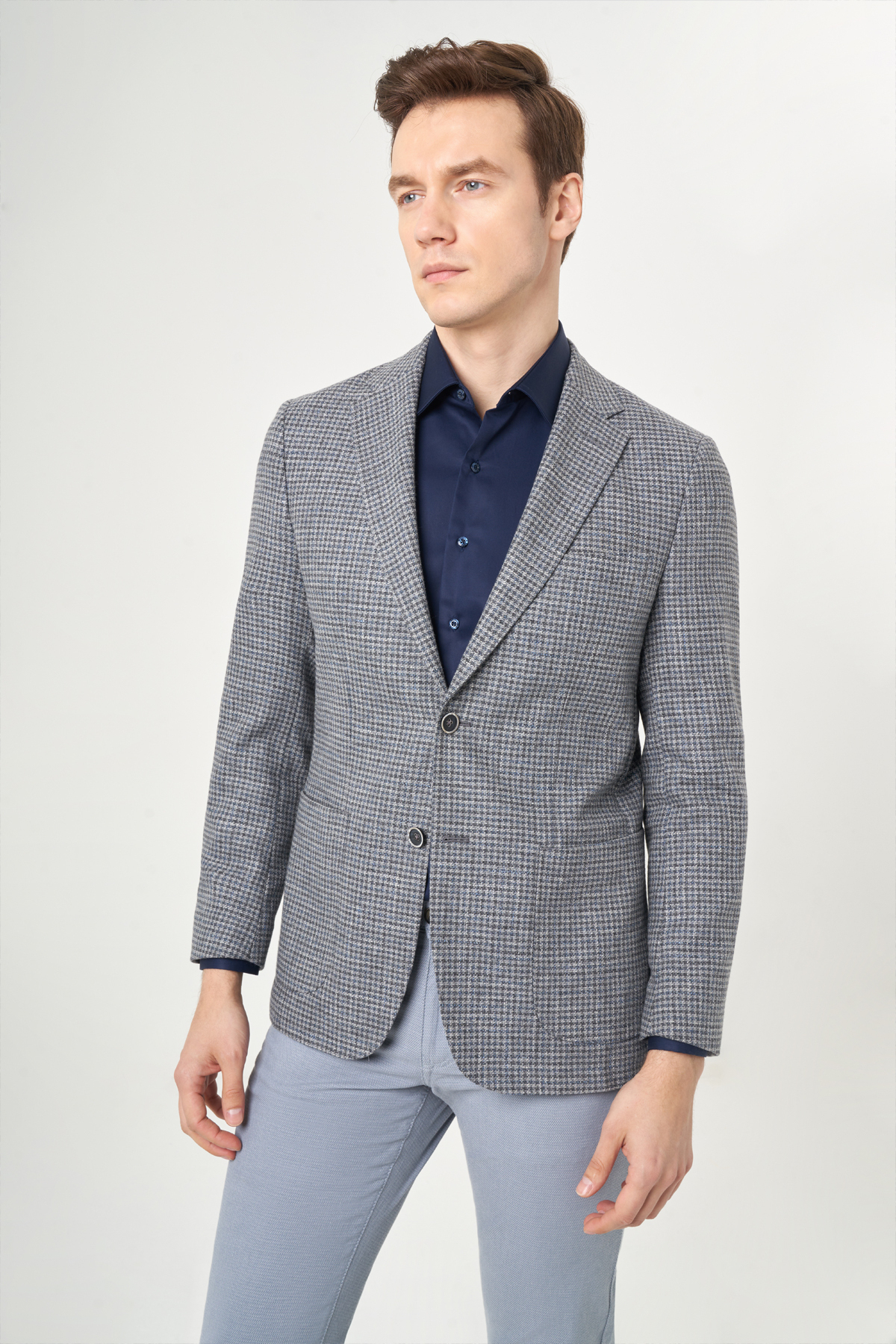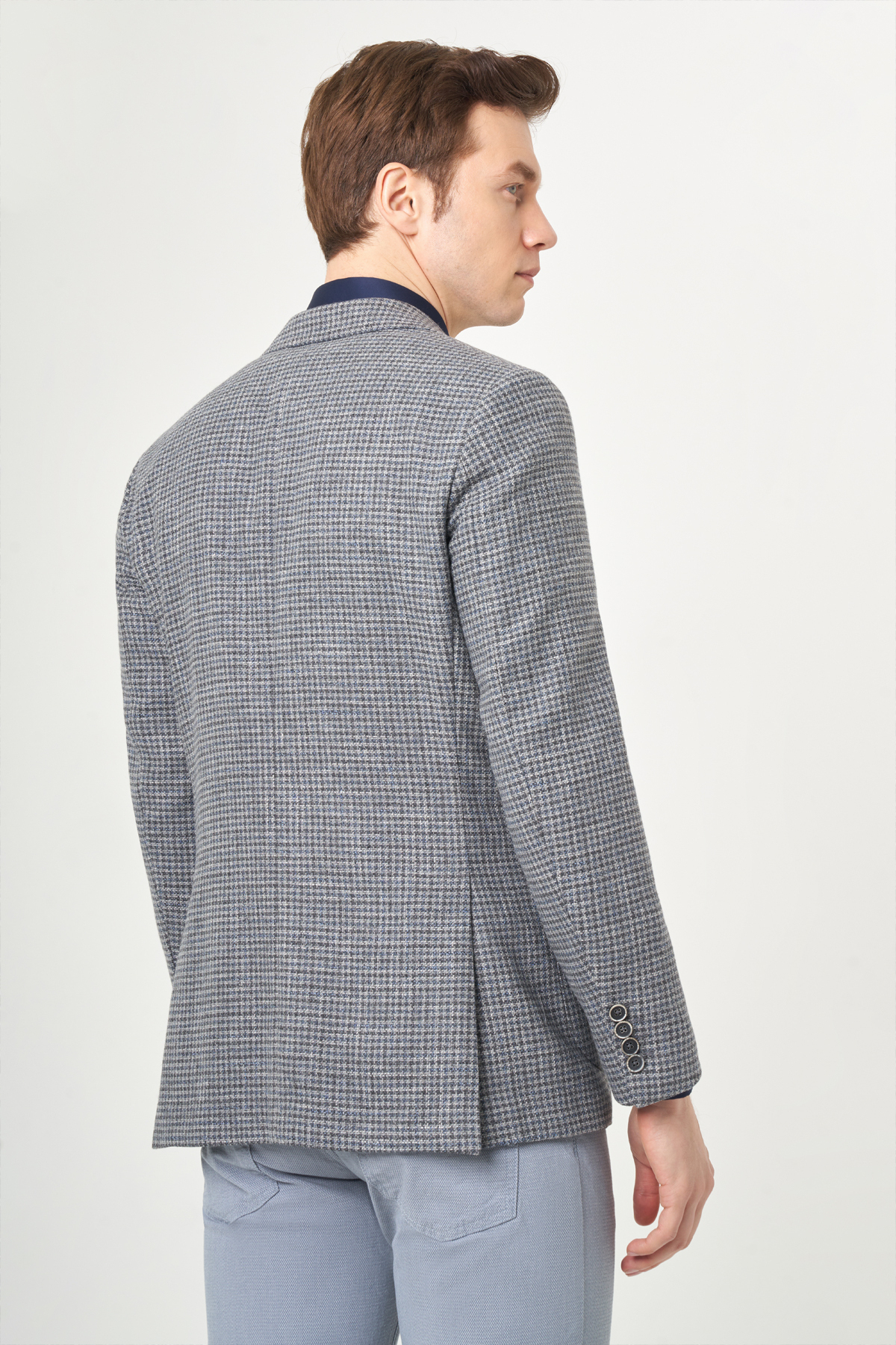 Erkek Regular Fit Mono Yaka 2 Düğmeli Çift Yırtmaçlı Ceket Gri