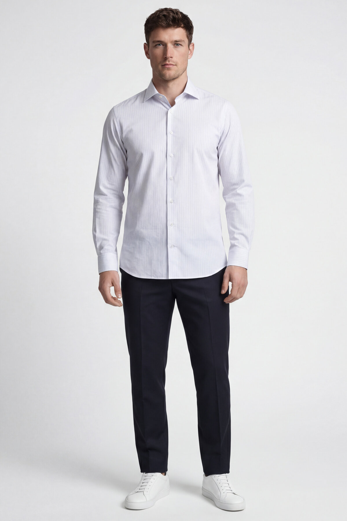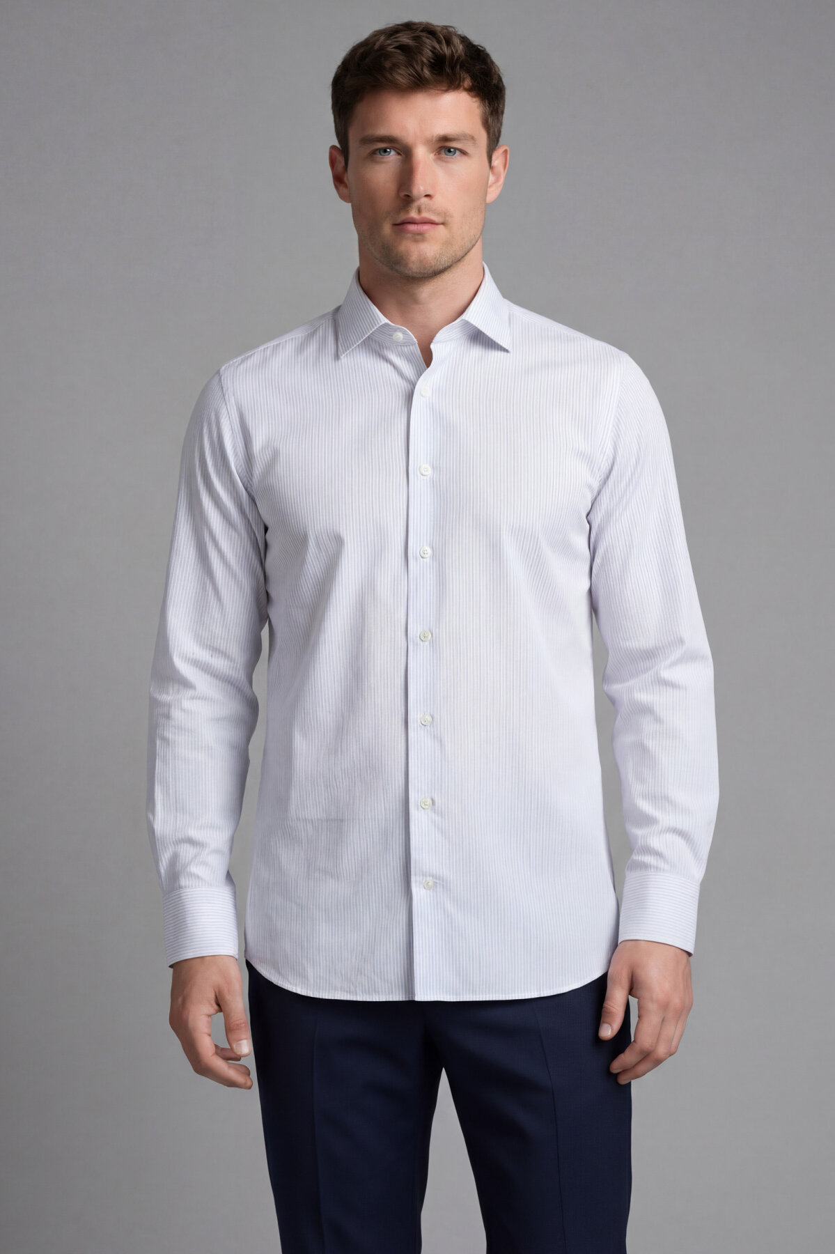 Erkek Regular Fit Uzun Kol Cepsiz Pamuk Beyaz Gömlek