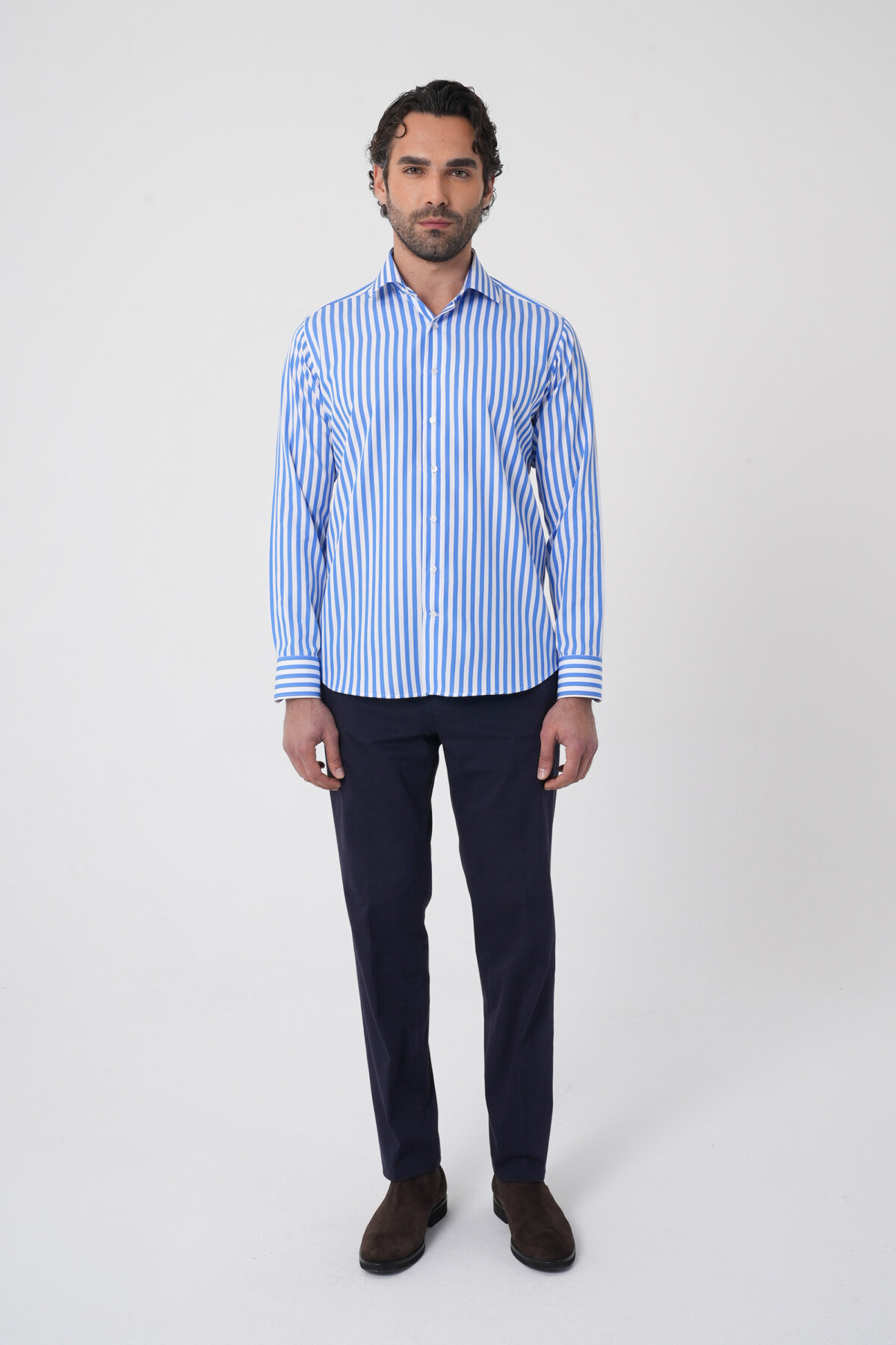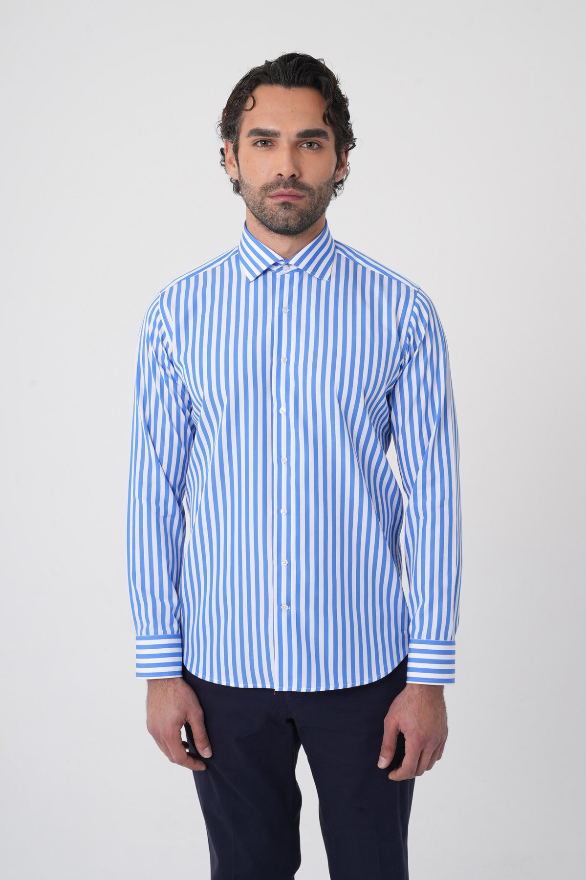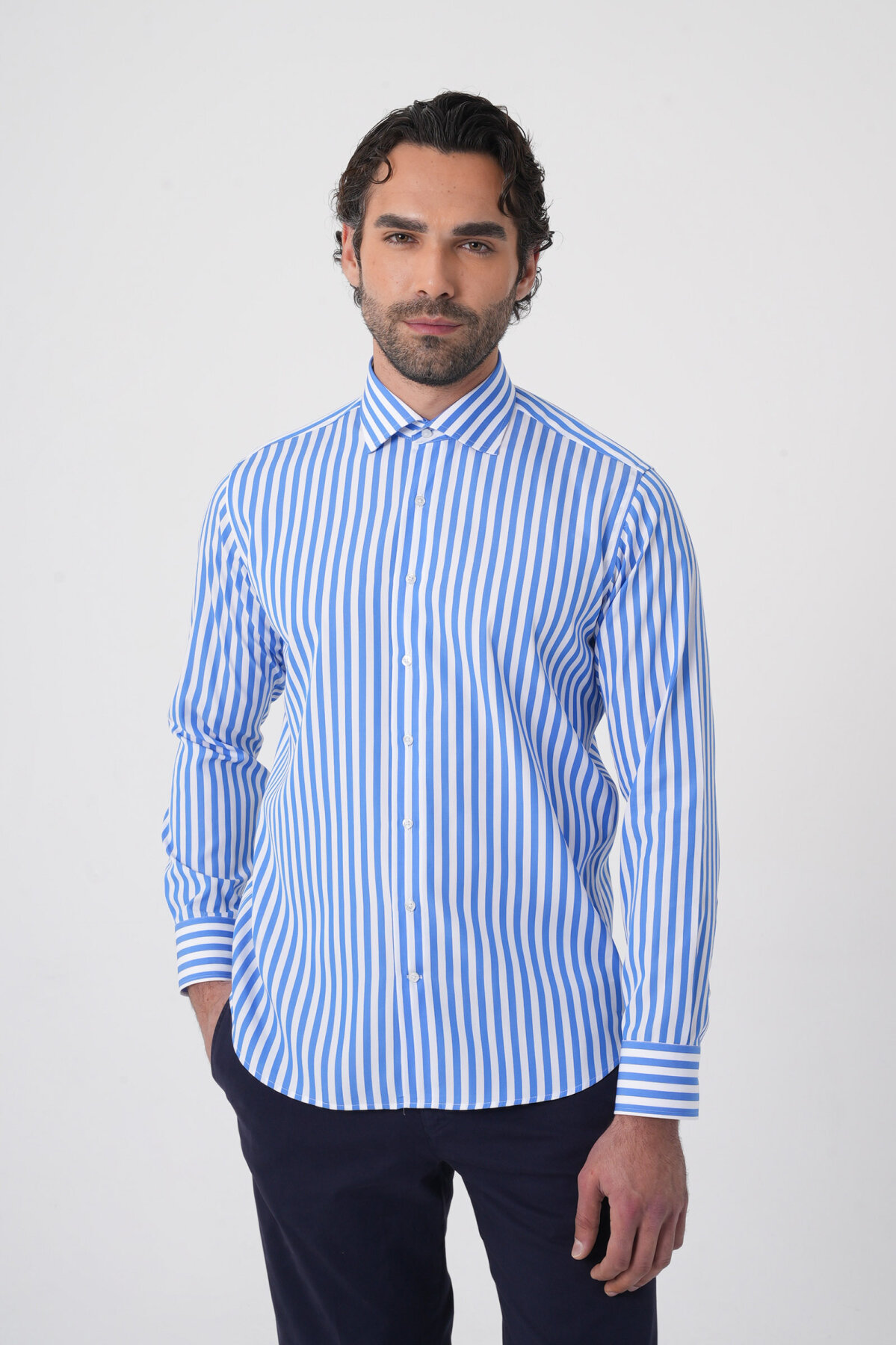 Erkek Regular Fit Uzun Kol İtalyan Yaka Pamuk Mavi Gömlek Mavi