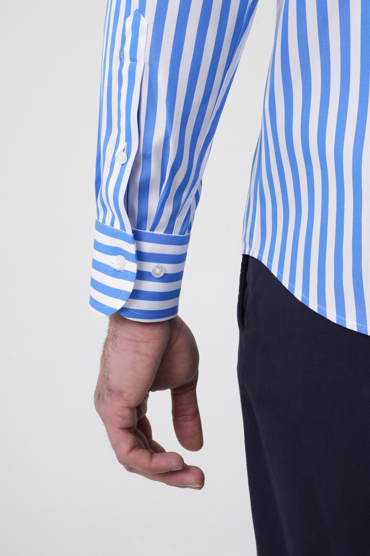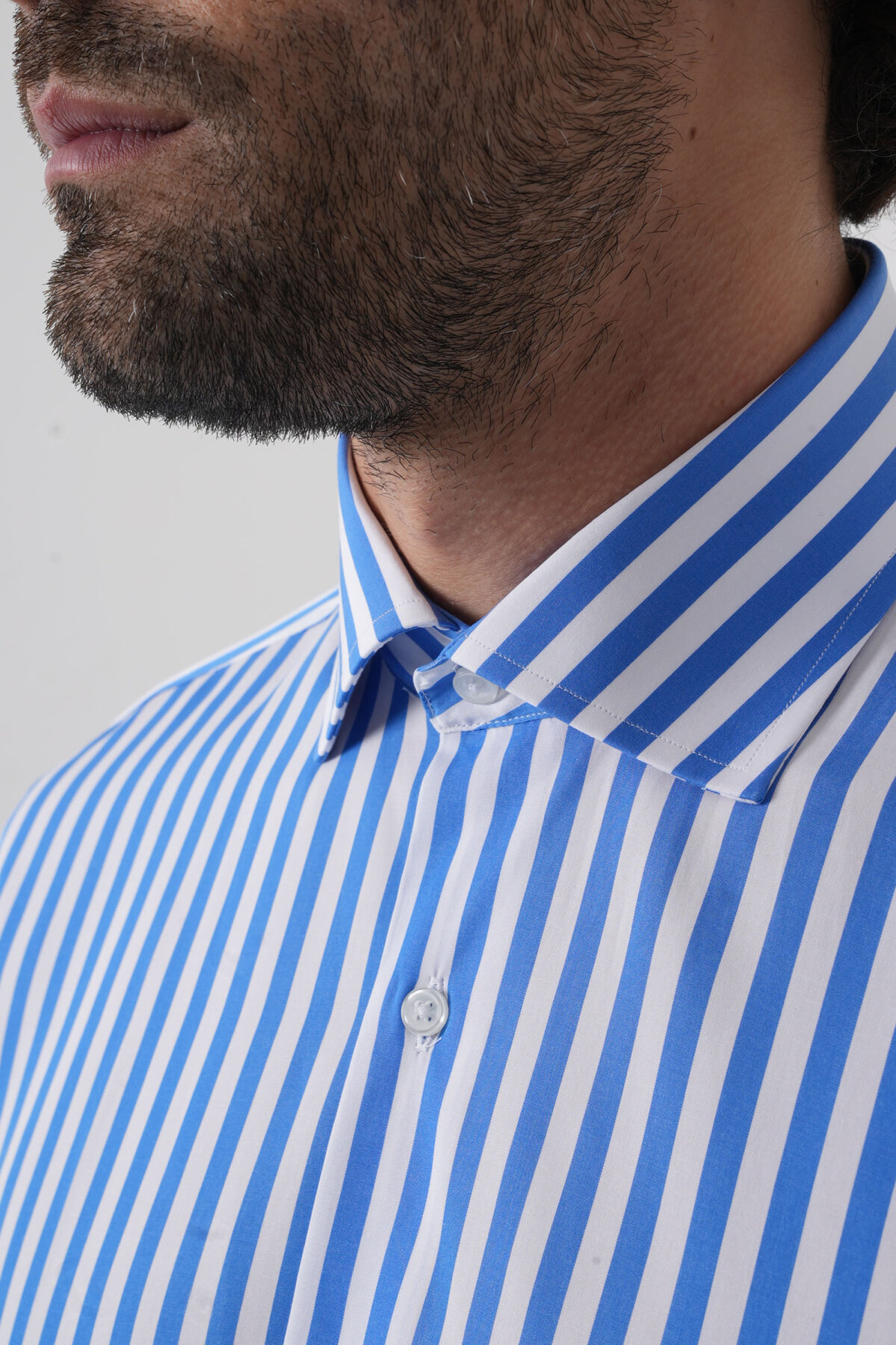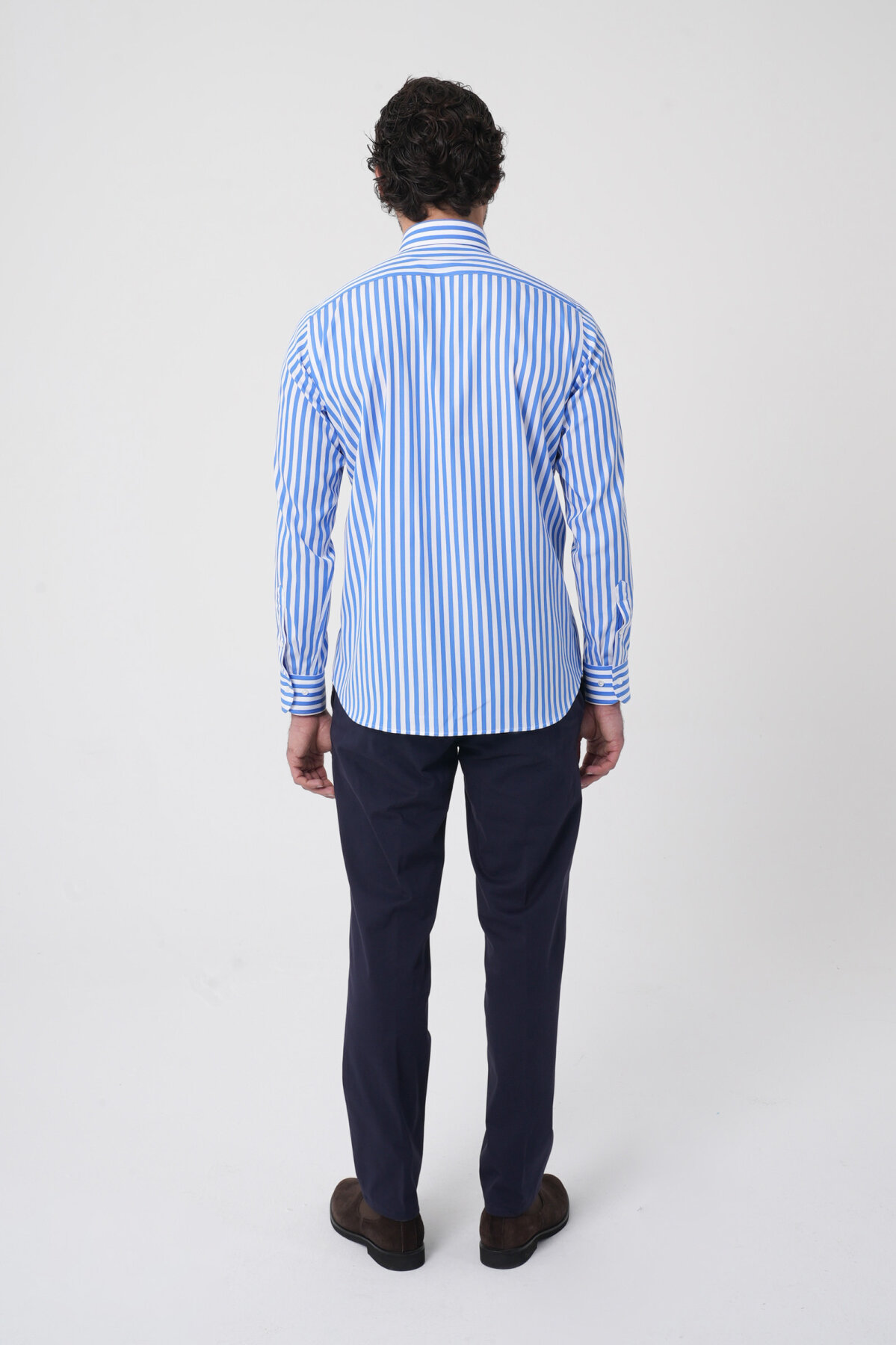 Erkek Regular Fit Uzun Kol İtalyan Yaka Pamuk Mavi Gömlek Mavi