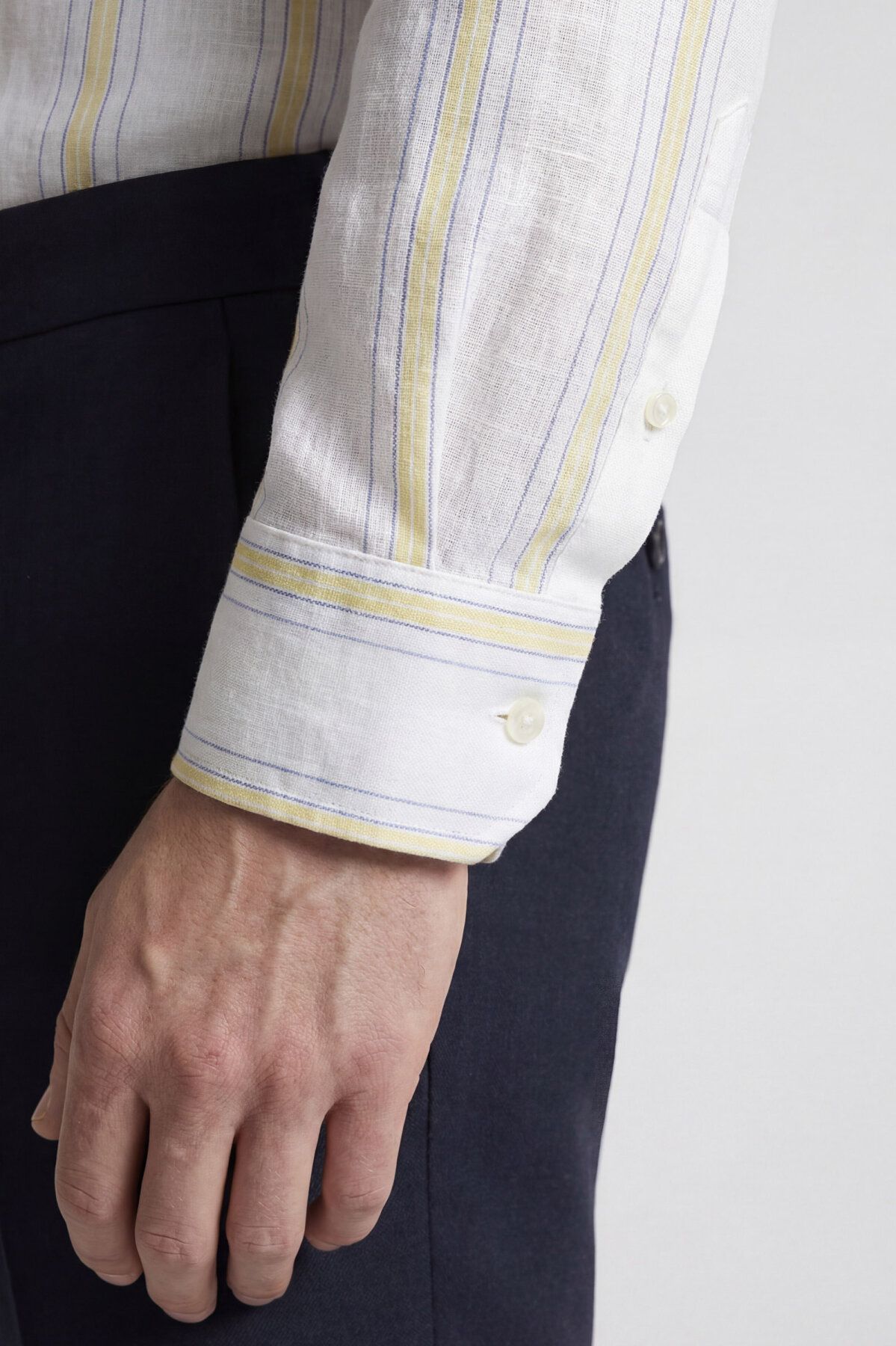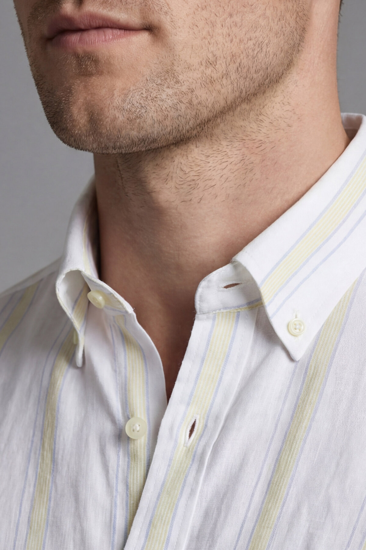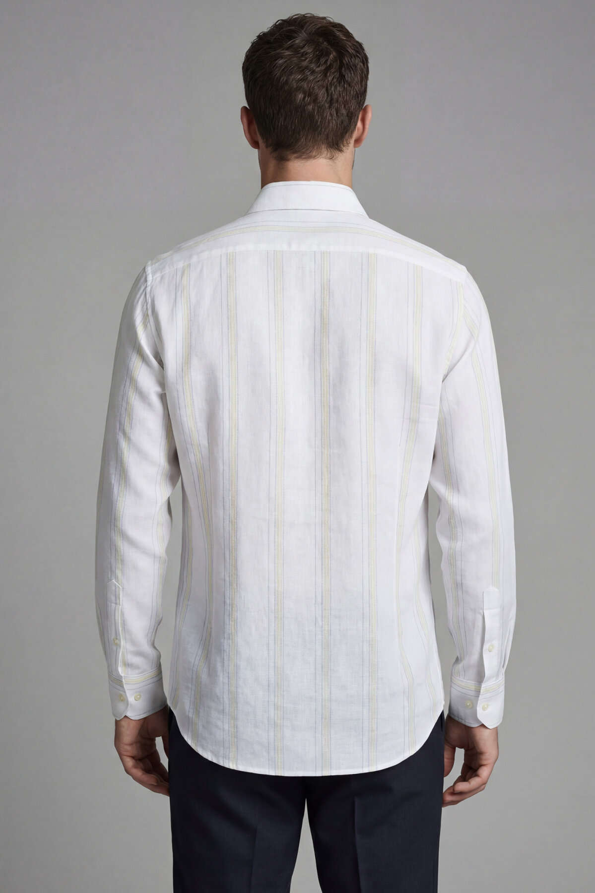 Erkek Regular Fit Uzun Kol Keten Paşa Yaka Sarı Gömlek