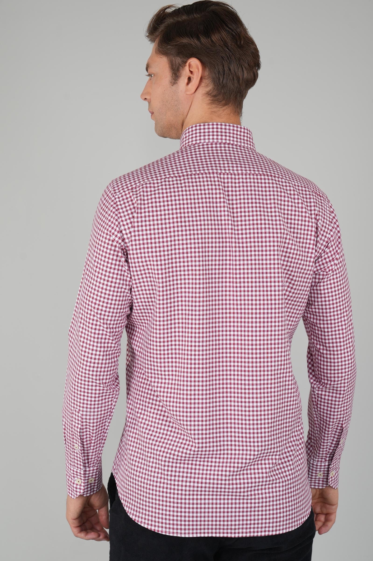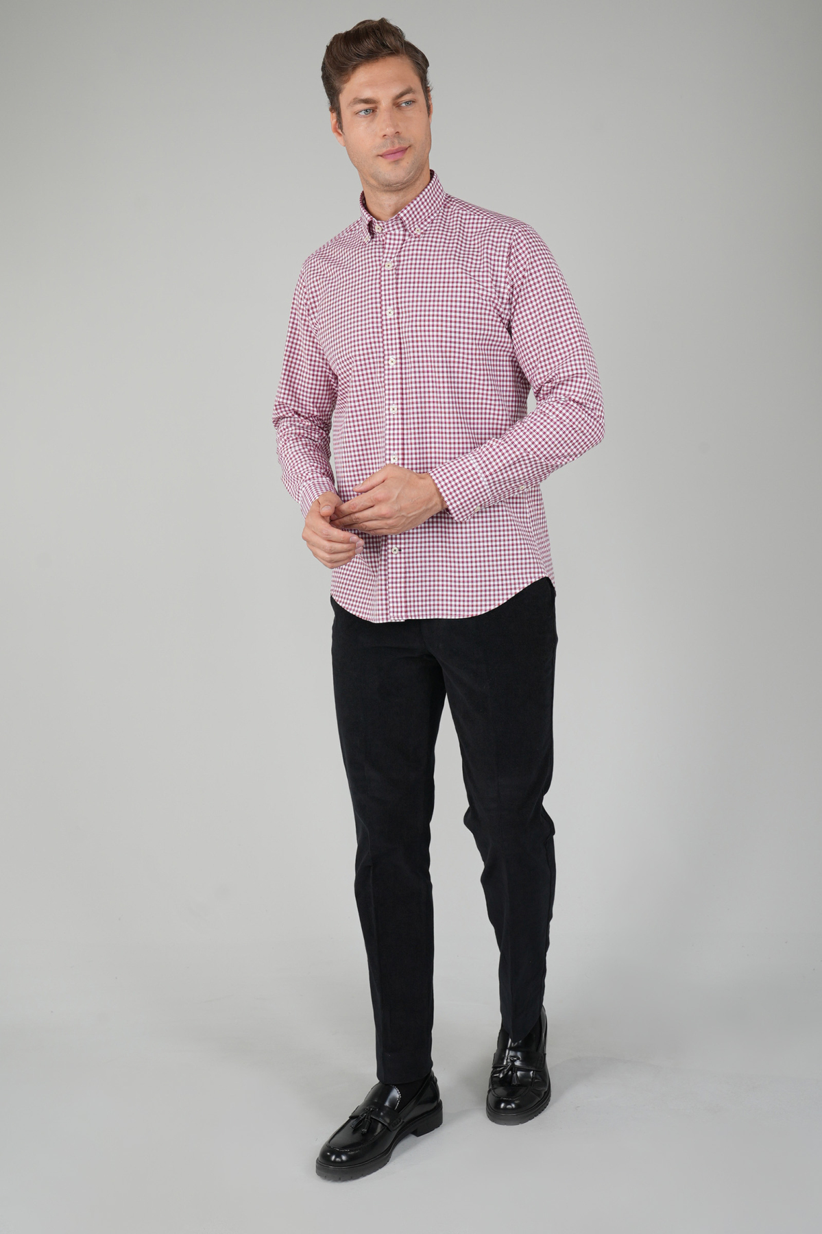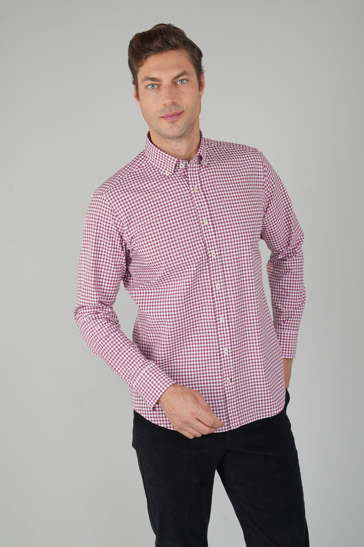 Erkek Regular Fit Uzun Kol Paşa Yaka Erkek Regular Pamuk Kırmızı Gömlek