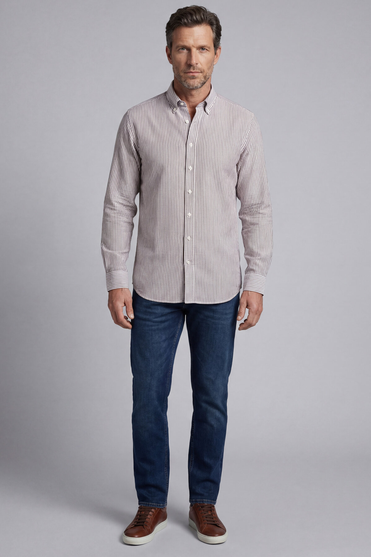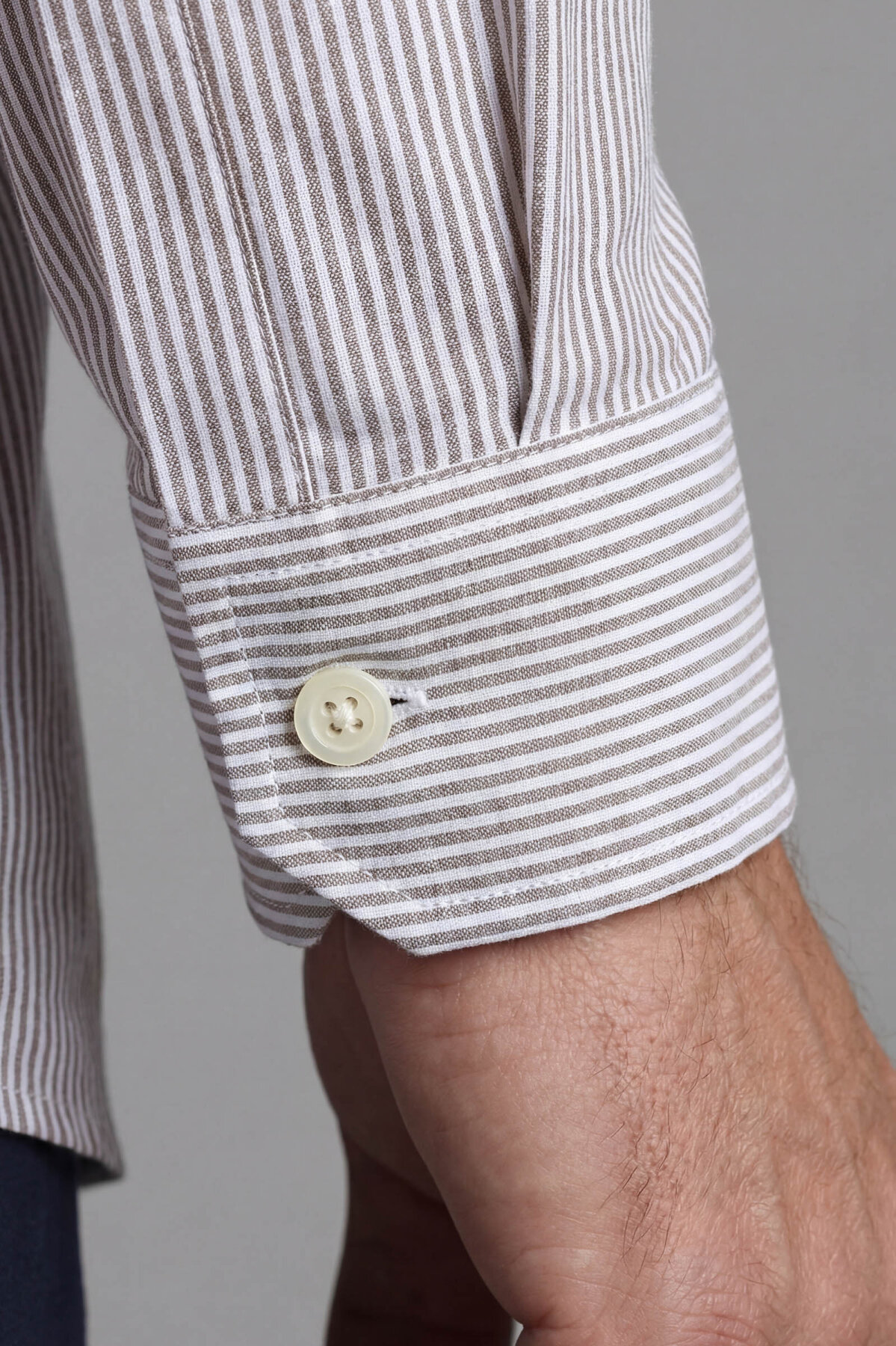 Erkek Regular Fit Uzun Kol Paşa Yaka Pamuk Keten Vizon Gömlek