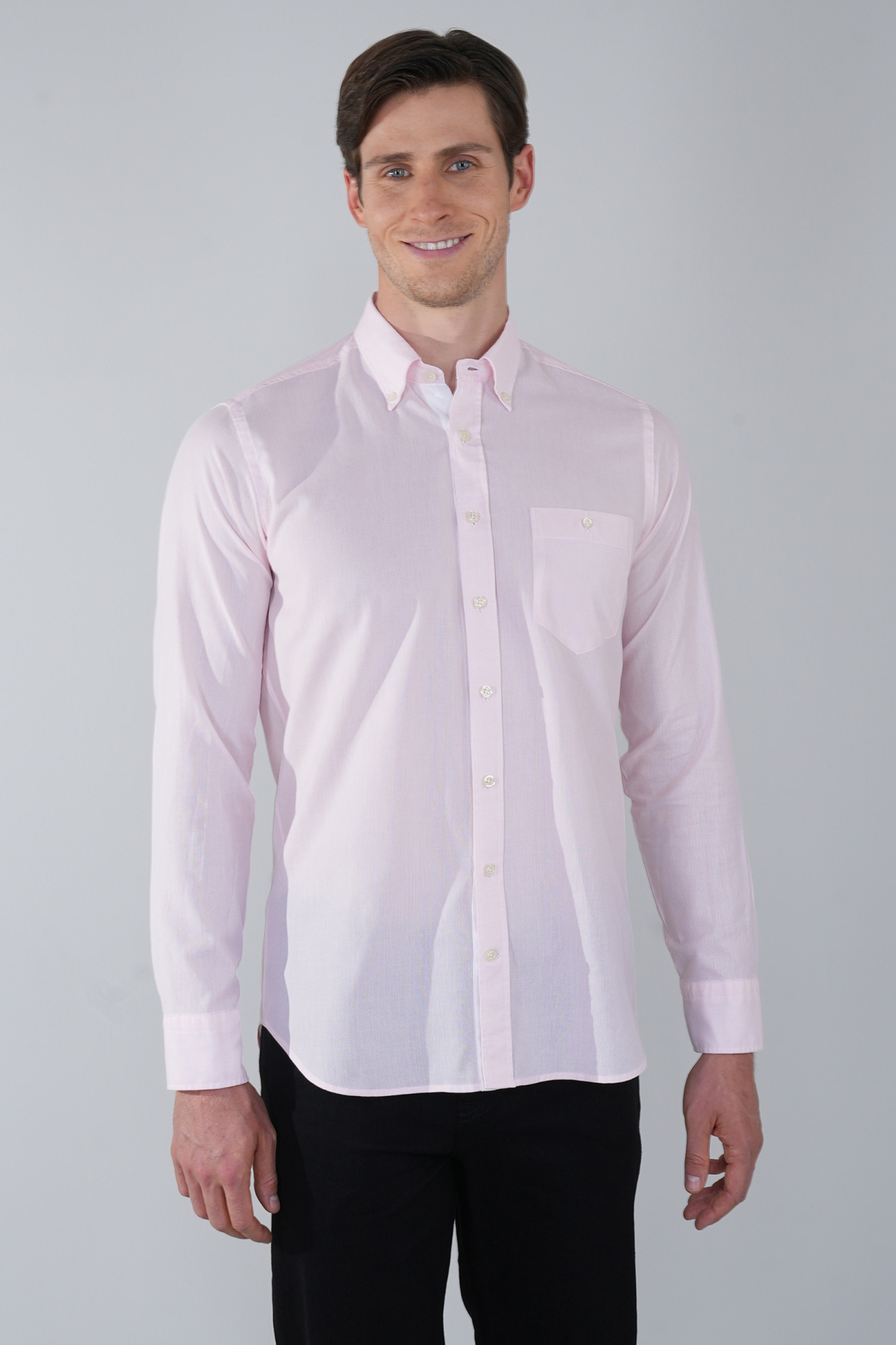 Erkek Regular Fit Uzun Kol Pembe Gömlek