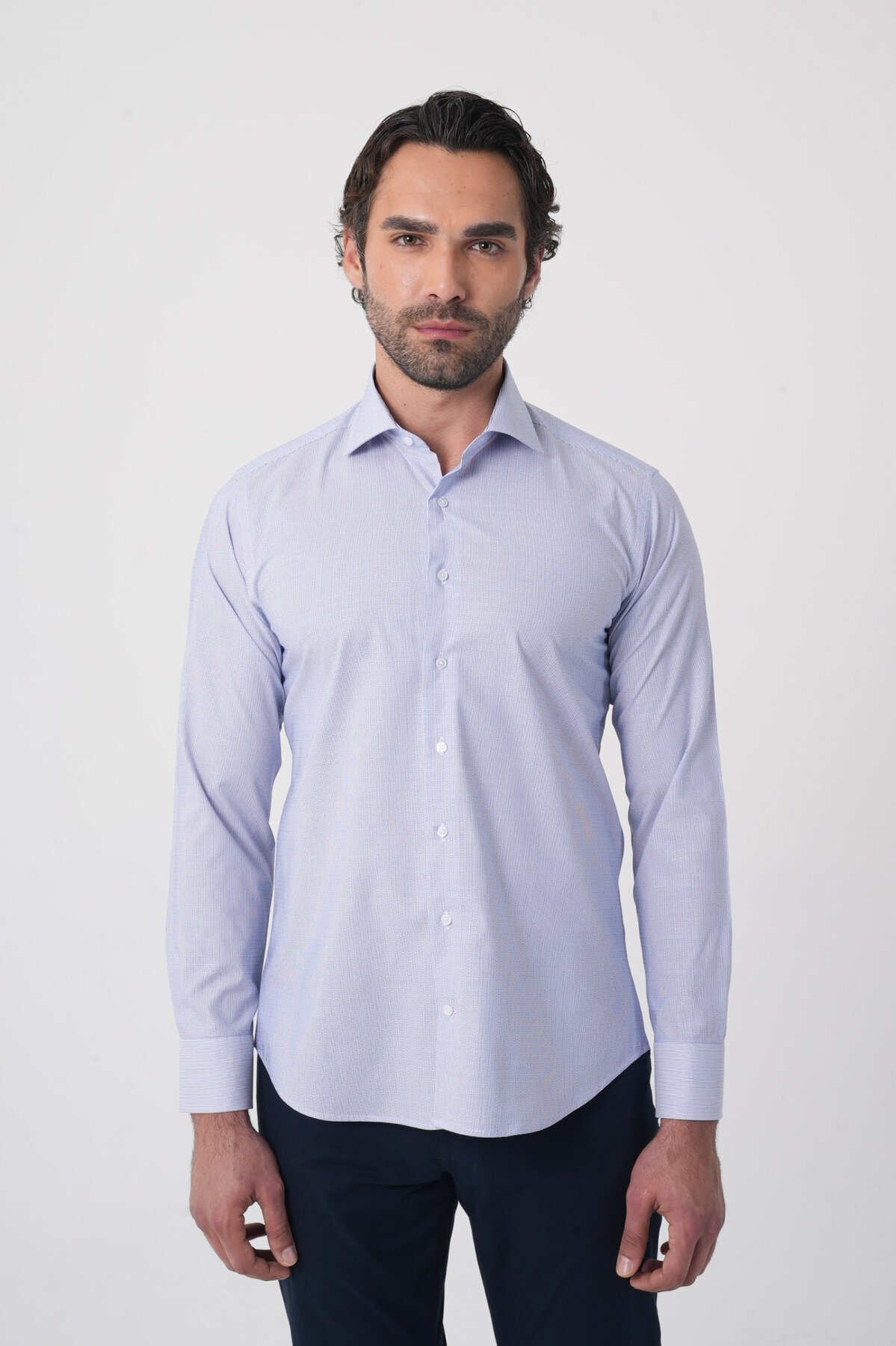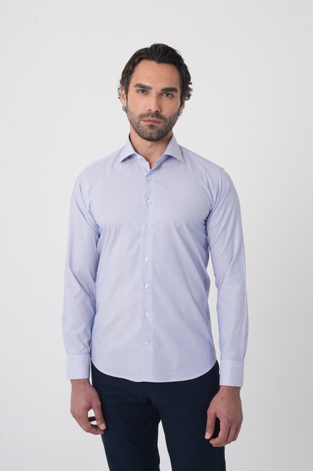 Erkek Regular Fit Uzun Kollu İtalyan Yaka Mavi Gömlek Mavi