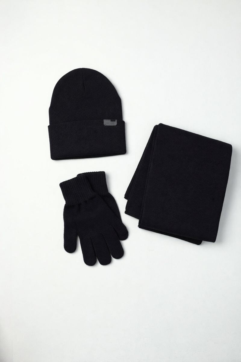 Erkek Siyah Akrilik Atkı Bere Seti