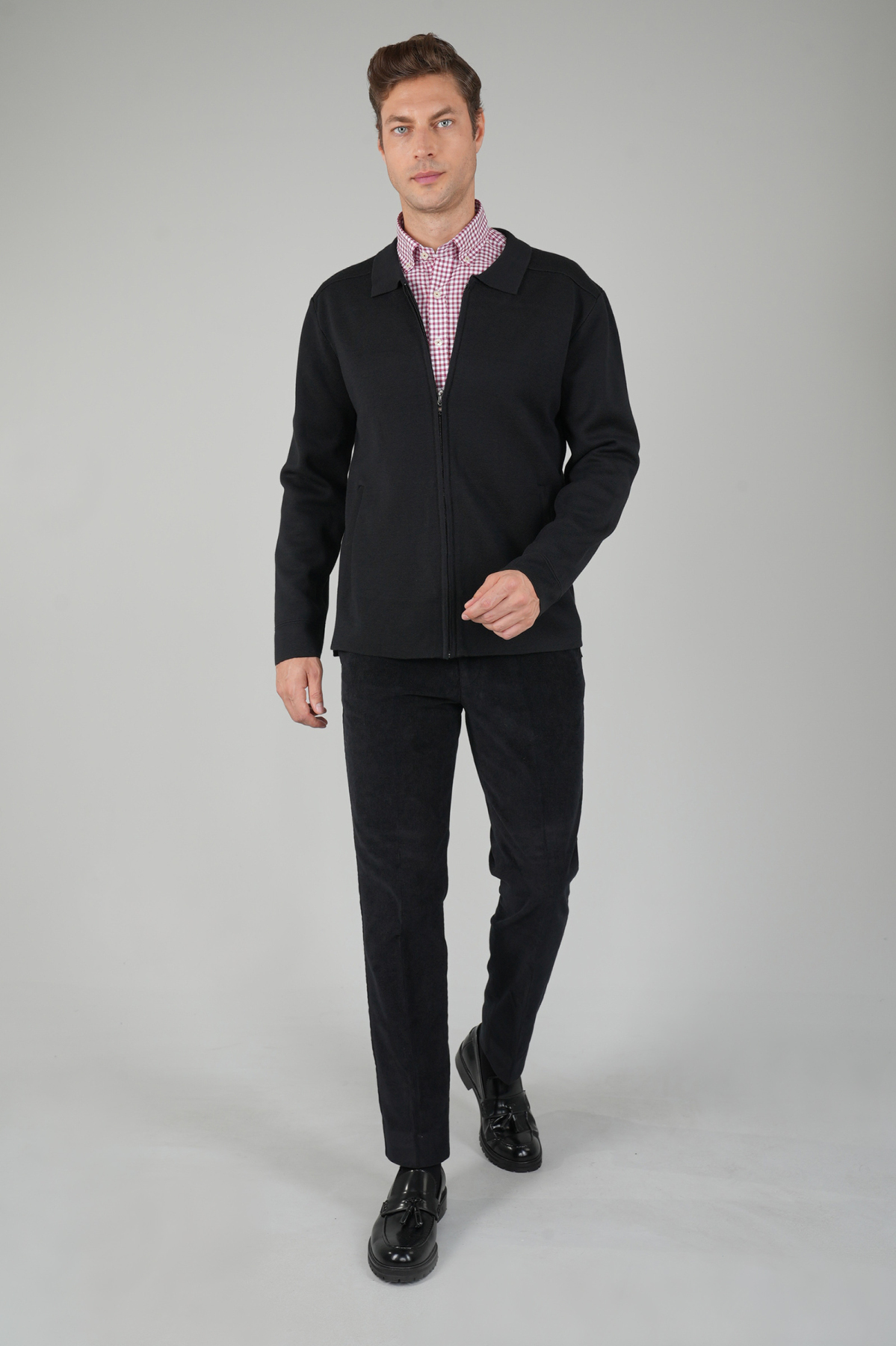 Erkek Siyah Fermuarlı Hırka