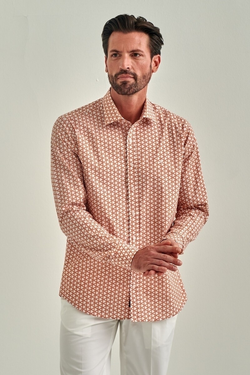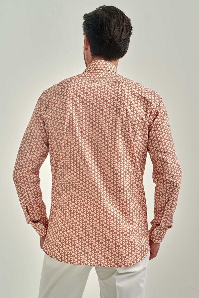 Erkek Turuncu Regular Fit Uzun Kol Klasik Yaka Spor Gömlek